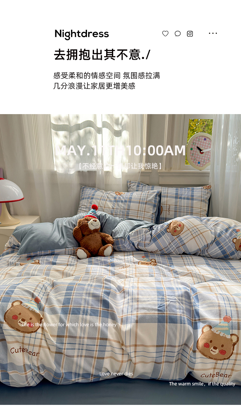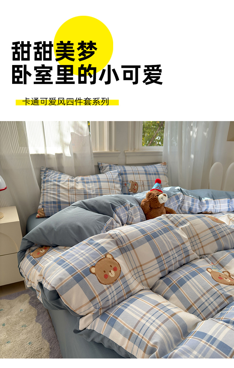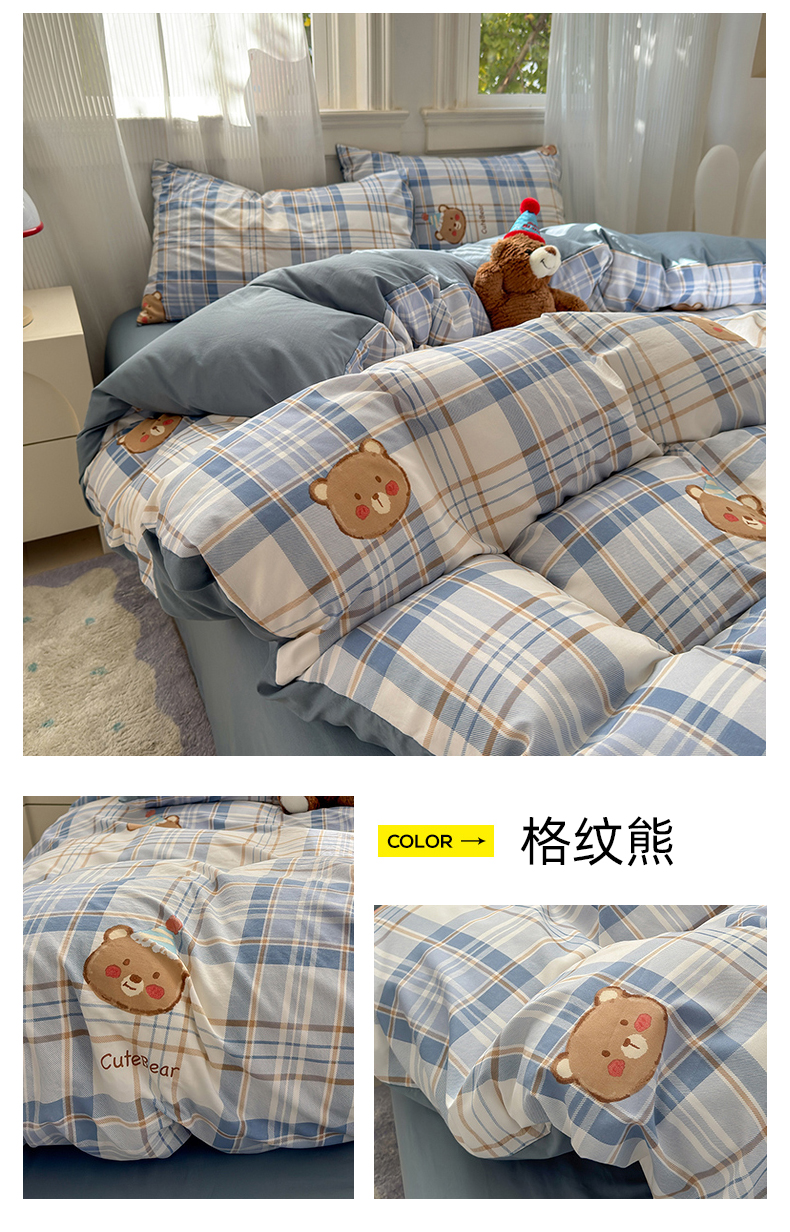 当前位置: 91家纺网 > 商品网购 > 床品套件 > 四件套 > 沐芷 2025 A类软萌水洗棉卡通印花四件套床上用品三件套被套床单 格纹熊
