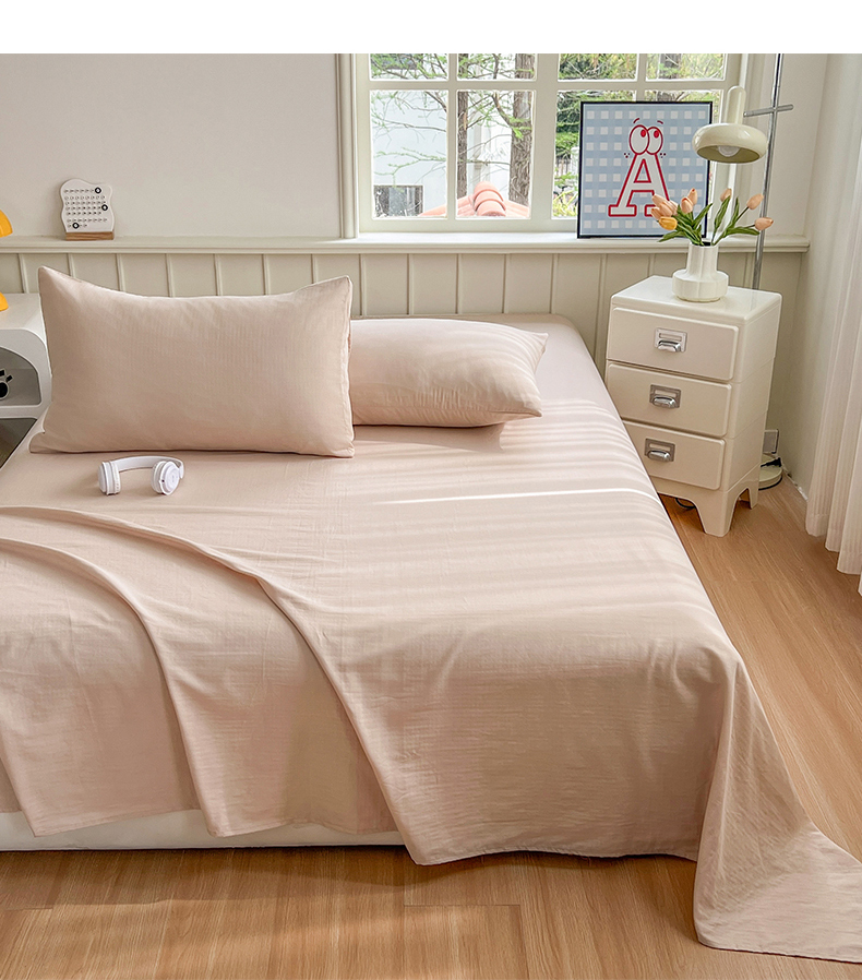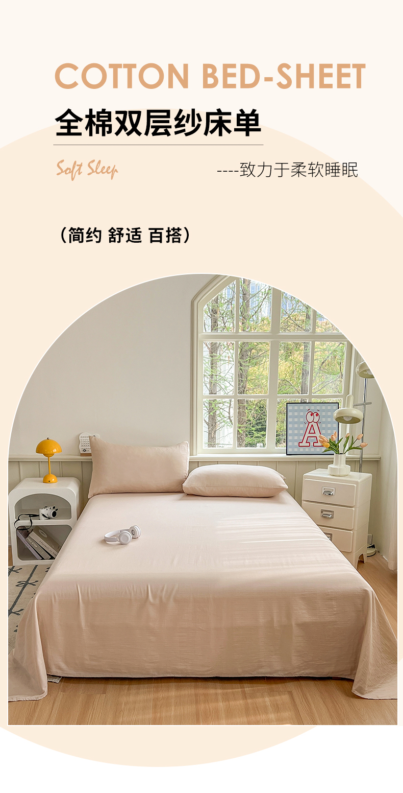 柠萌家居 2025年新款A类母婴级纯棉双层纱床单全棉床单 双层纱浅香槟