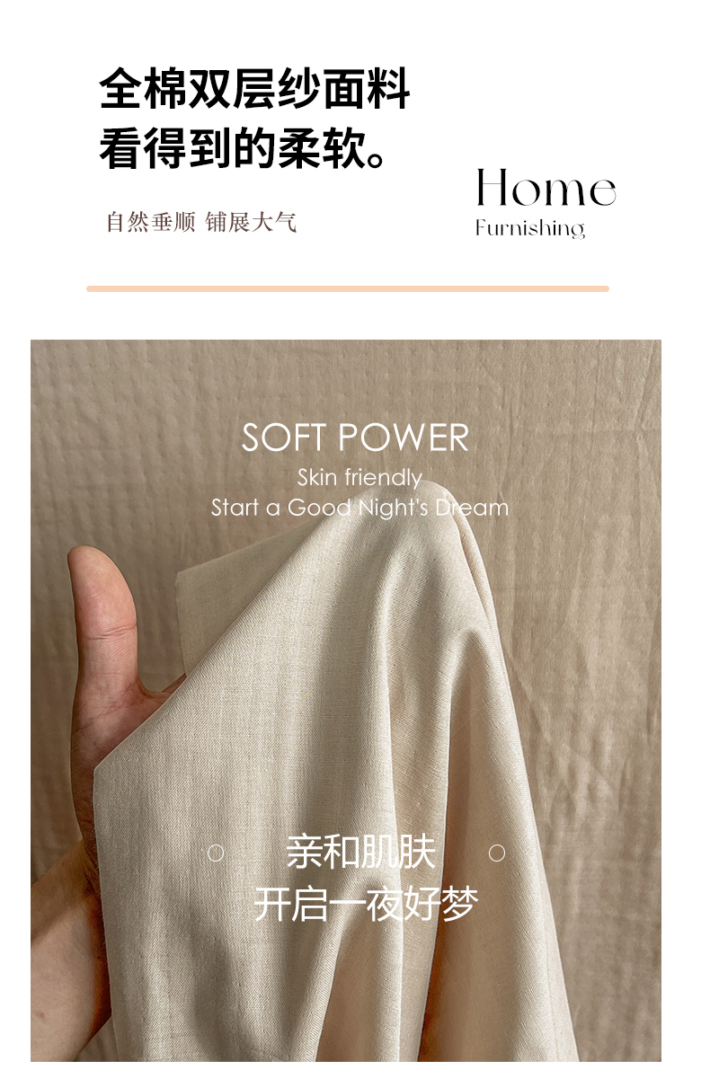 • 91家纺网 家纺一手货源 找家纺 柠萌家居 2025年新款A类母婴级纯棉双层纱床单全棉床单 双层纱浅香槟 91家纺网 家纺一手货源 找家纺 柠萌家居 2025年新款A类母婴级纯棉双层纱床单全棉床单 双层纱浅香槟