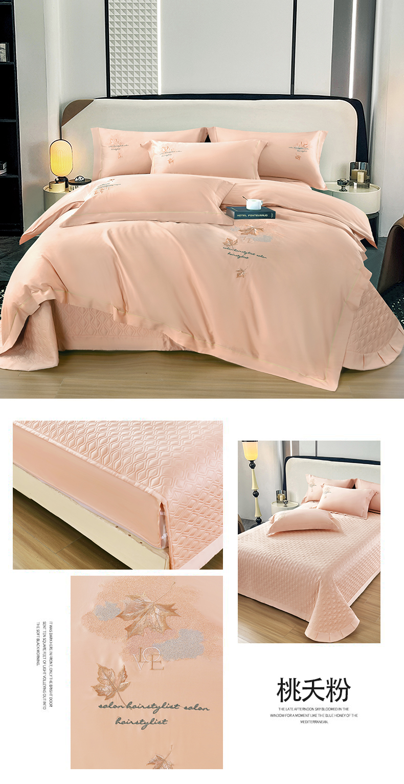 商品名称:OL家纺 2025新款100支天丝棉居家轻奢床盖夹棉防滑四件套 桃夭粉