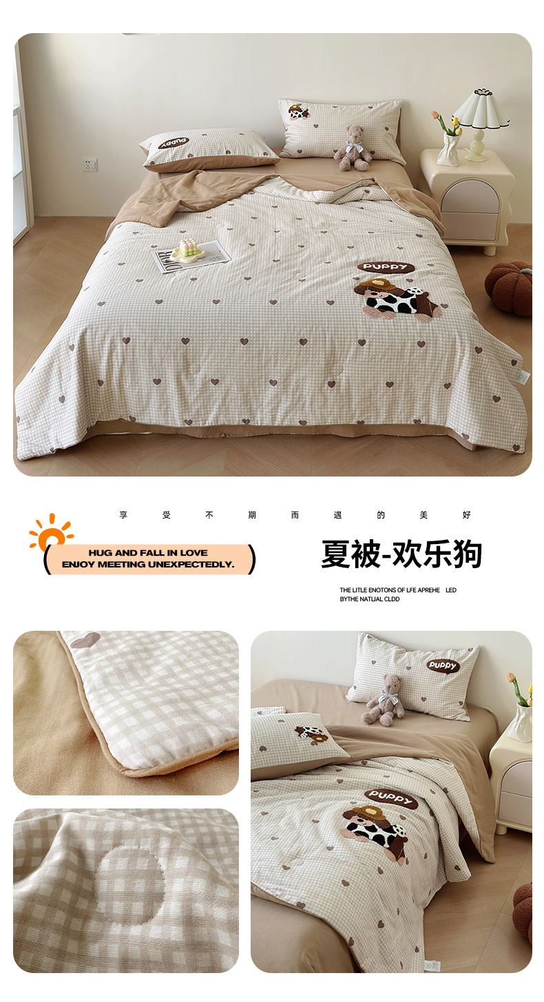 怡家居 2025新款全棉双层纱毛巾绣夏被四件套 夏被-欢乐狗