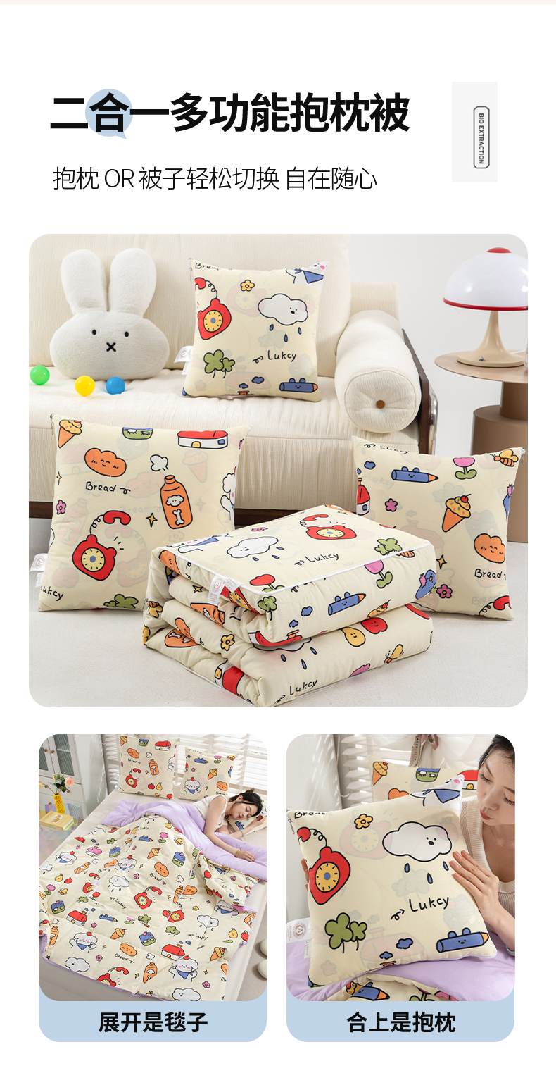 商品名称:照世家纺 2025春夏新款全棉纯棉印花A类抱枕被 涂鸦乐园 45x45展开120x160
