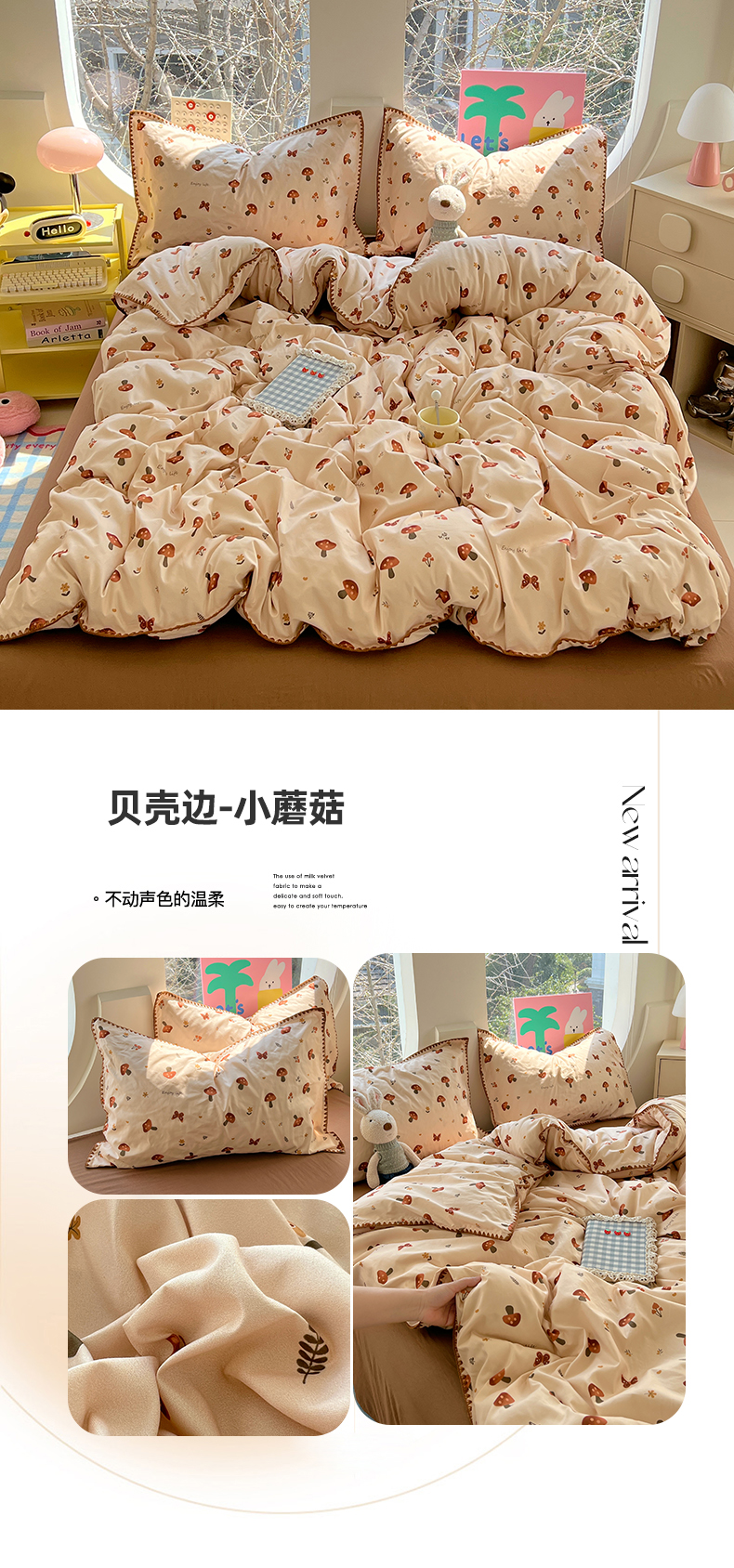 (总)思诺羽床笠 2025新款加厚牛奶绒印花四件套,彩韵,格棕,绒点,绒格蝶梦,樱语,紫爱心,紫蝶,紫花绒梦,紫韵