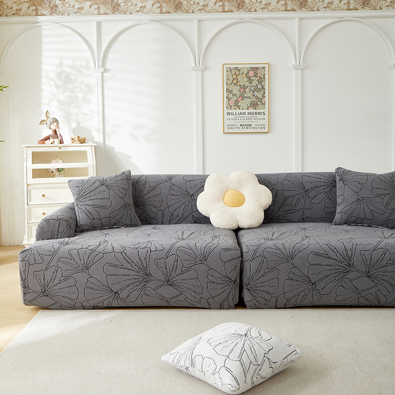 丝绮鹿 2025新款银杏叶系列-沙发套松紧款(组合沙发图) 象牙白