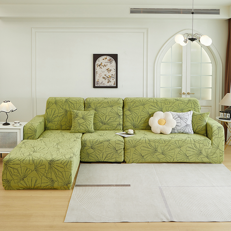 商品名称:丝绮鹿 2025新款银杏叶系列-沙发套松紧款(贵妃图) 橄榄绿