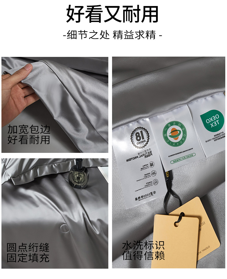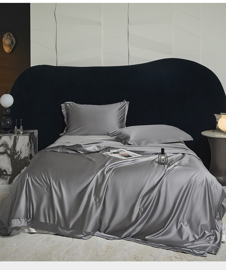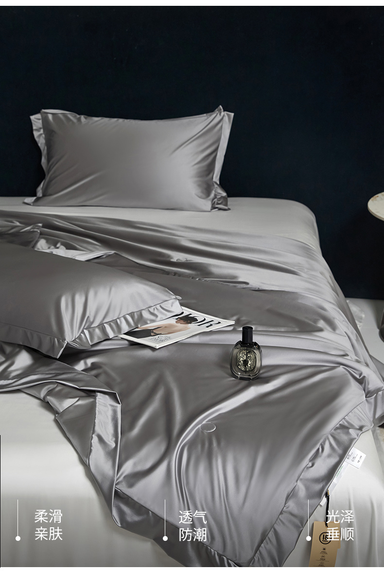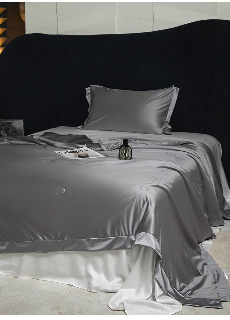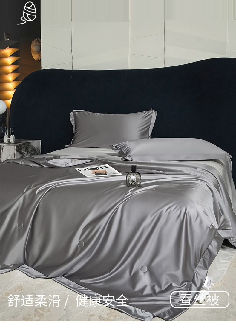 商品名称:头等舱 2025新款水光缎冰肌锦氨A类可水洗100%有机榨蚕丝夏被带礼盒 高级灰
