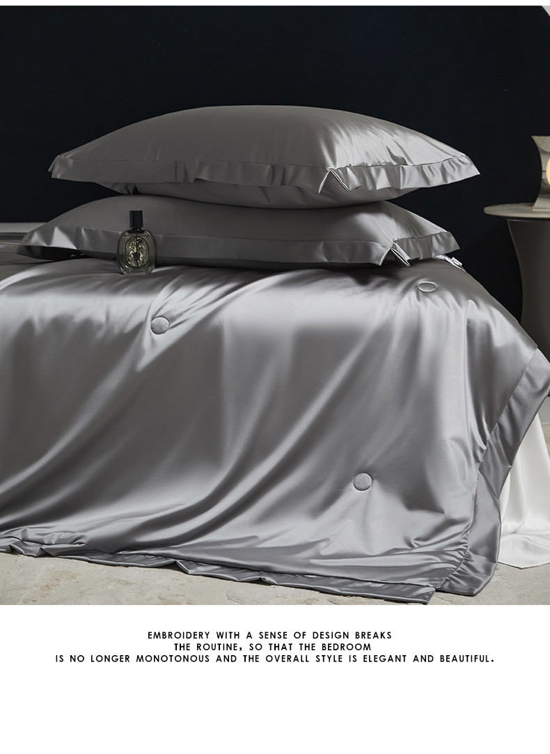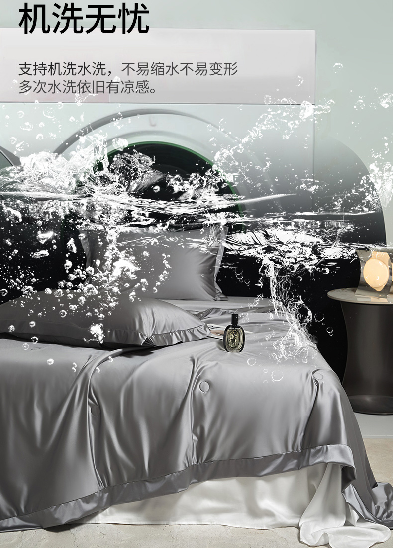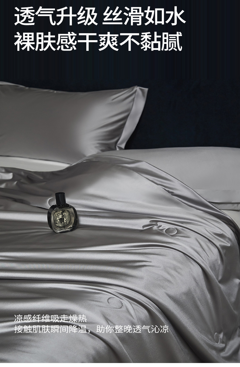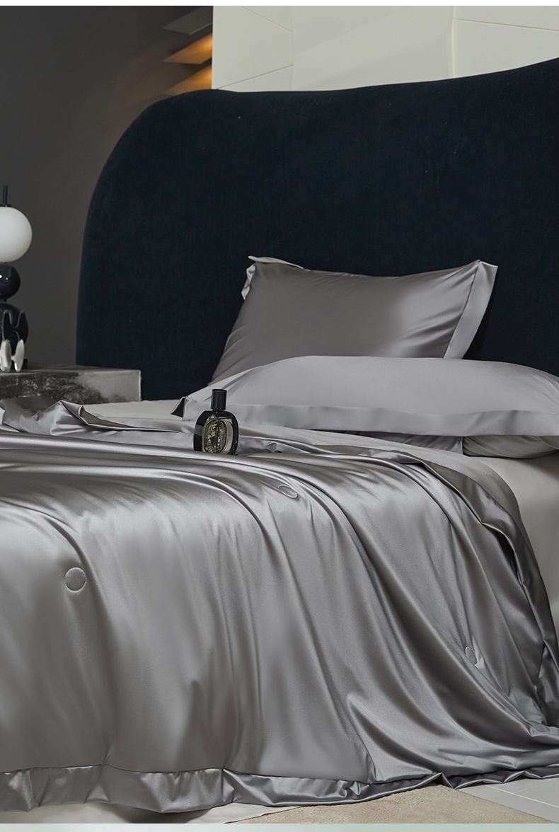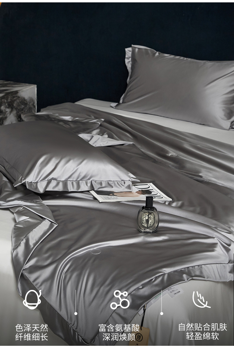 商品名称:头等舱 2025新款水光缎冰肌锦氨A类可水洗100%有机榨蚕丝夏被带礼盒 高级灰