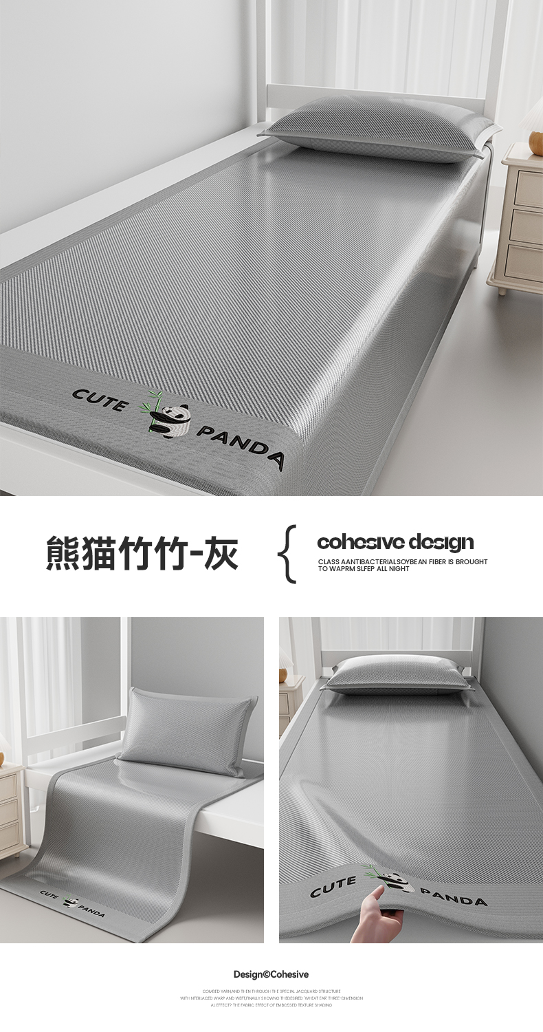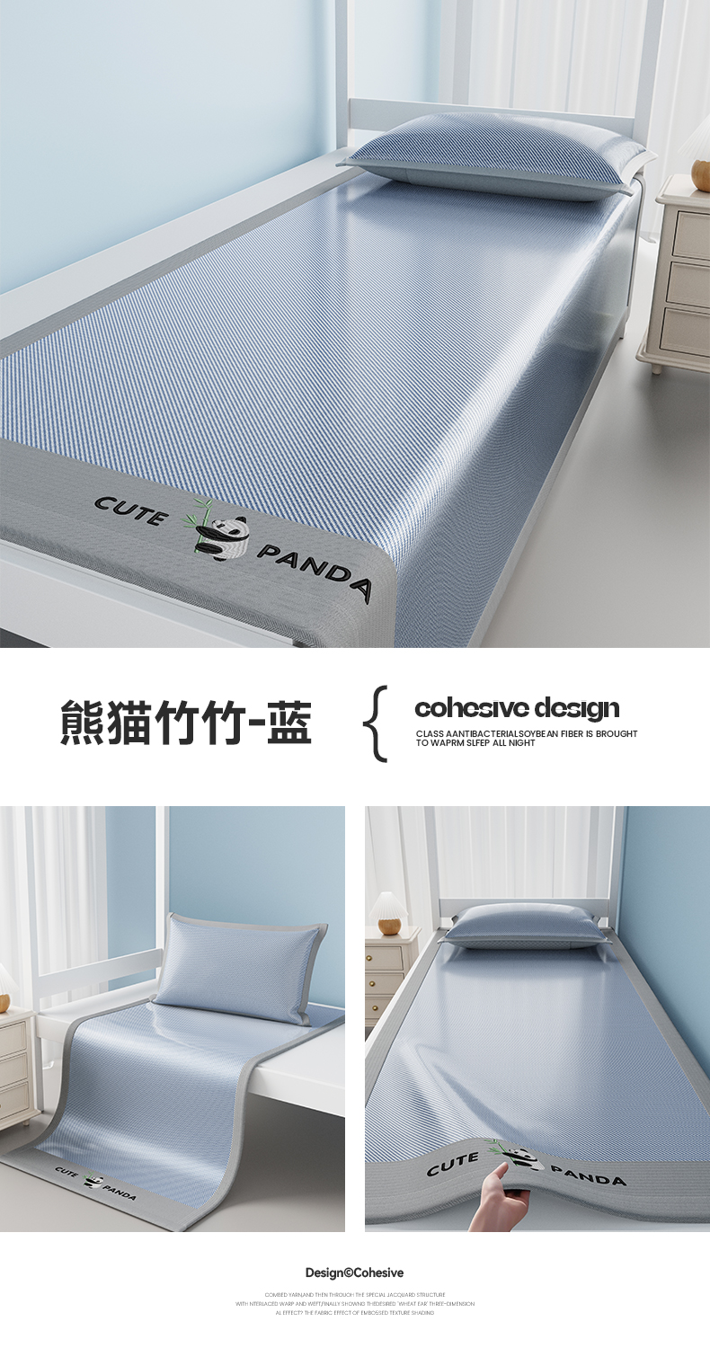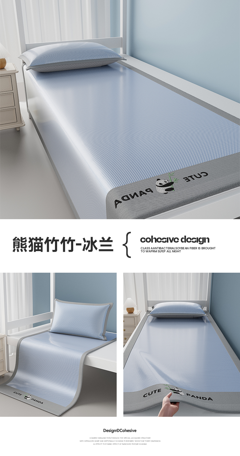 当前位置: 91家纺网 > 商品网购 > 床上用品 > 凉席 > 凉席套件 > 摩妮卡 2025新款绣花冰丝软凉席上下铺冰丝席 三件套床笠 熊猫竹竹-冰兰