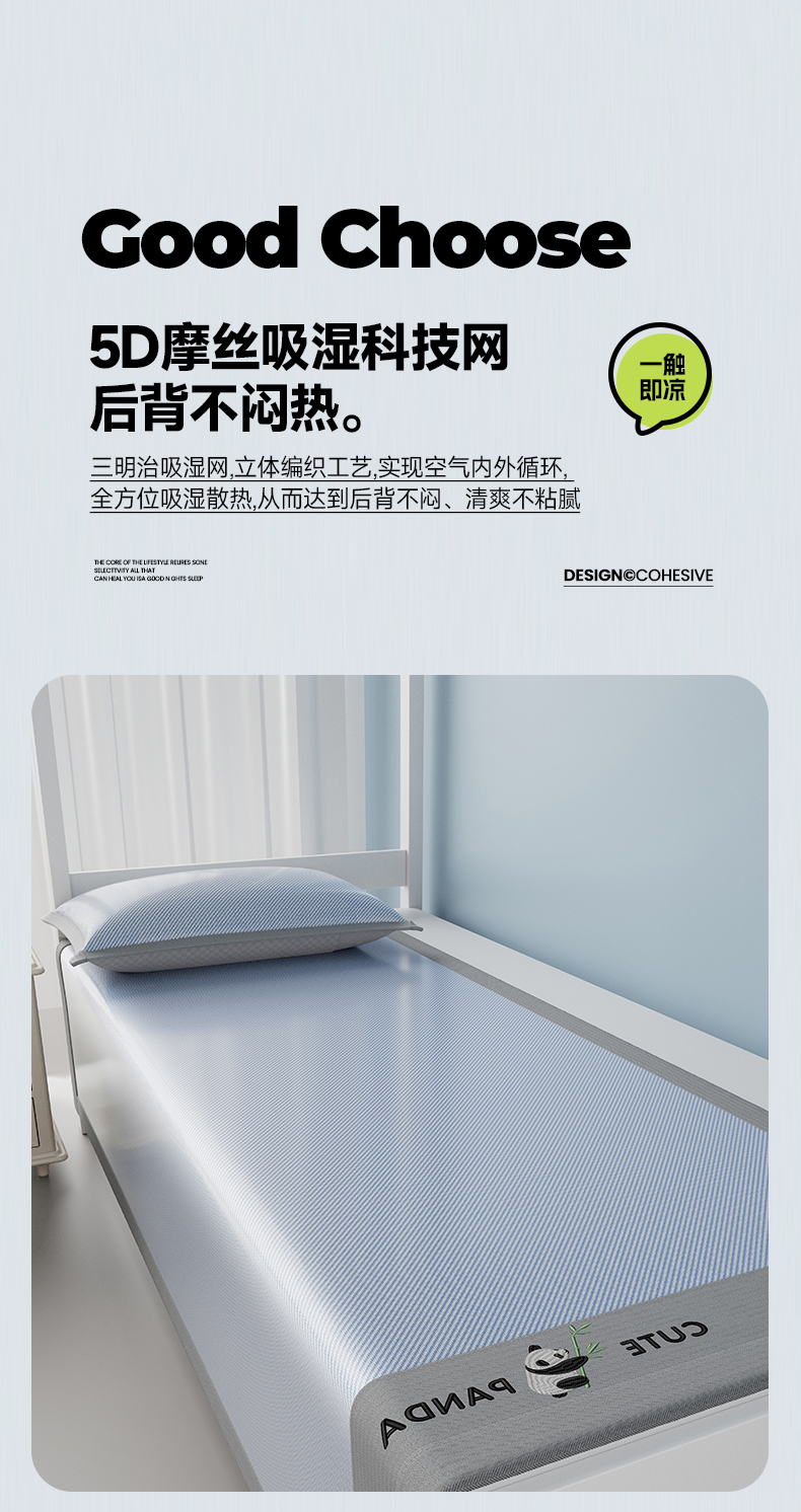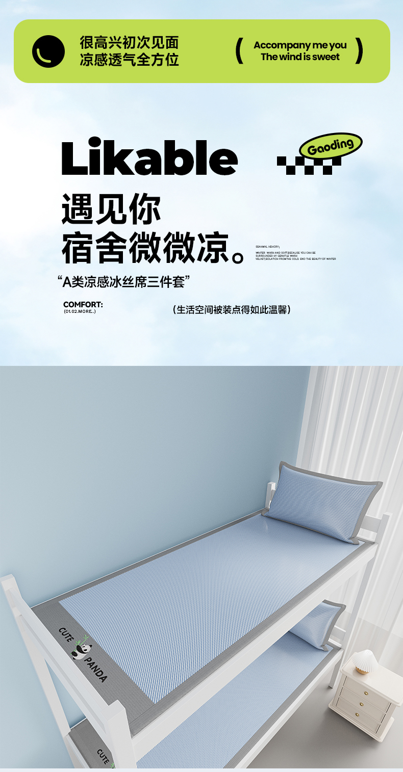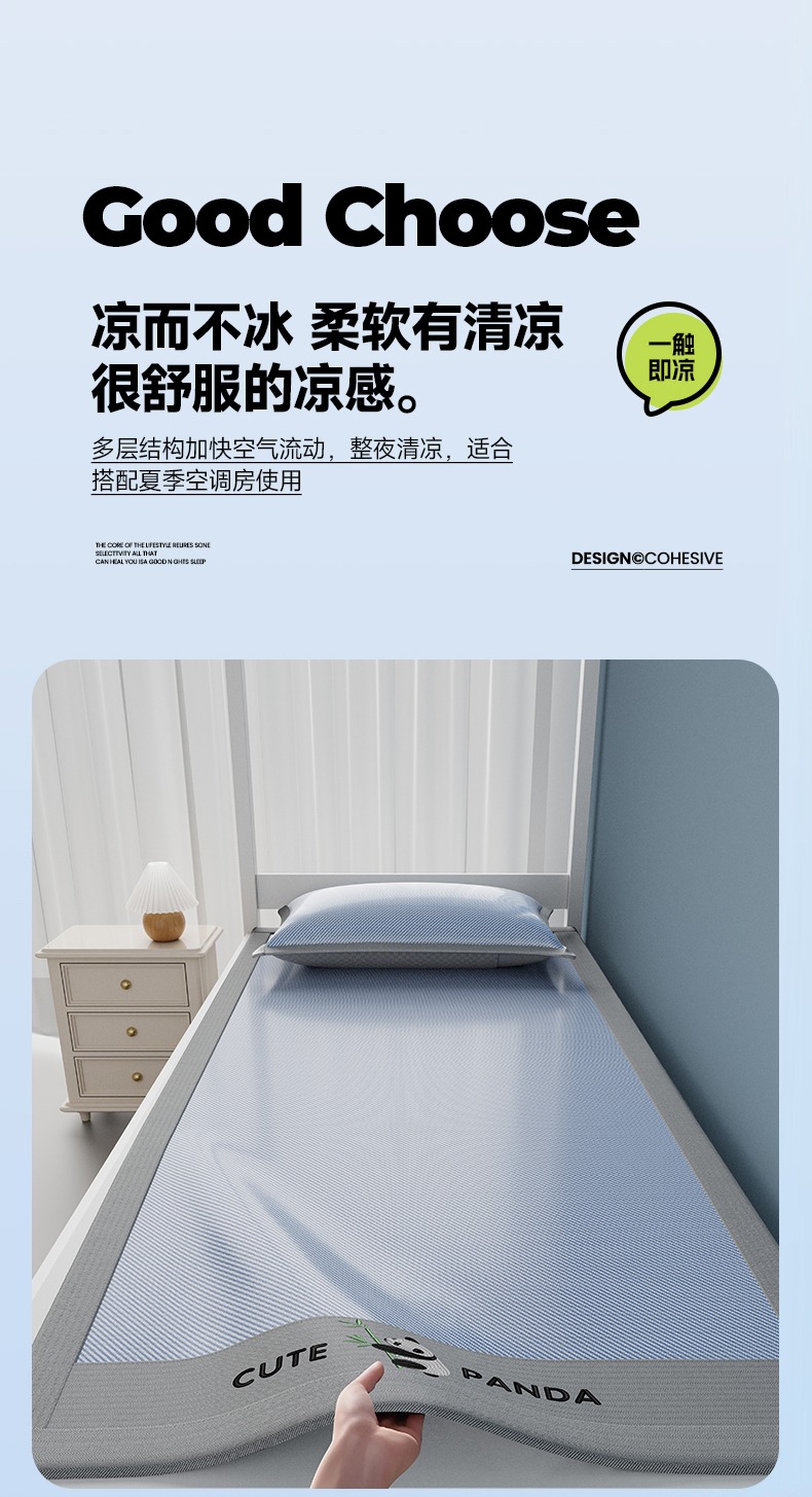 当前位置: 91家纺网 > 商品网购 > 床上用品 > 凉席 > 凉席套件 > 摩妮卡 2025新款绣花冰丝软凉席上下铺冰丝席 三件套床笠 熊猫竹竹-冰兰