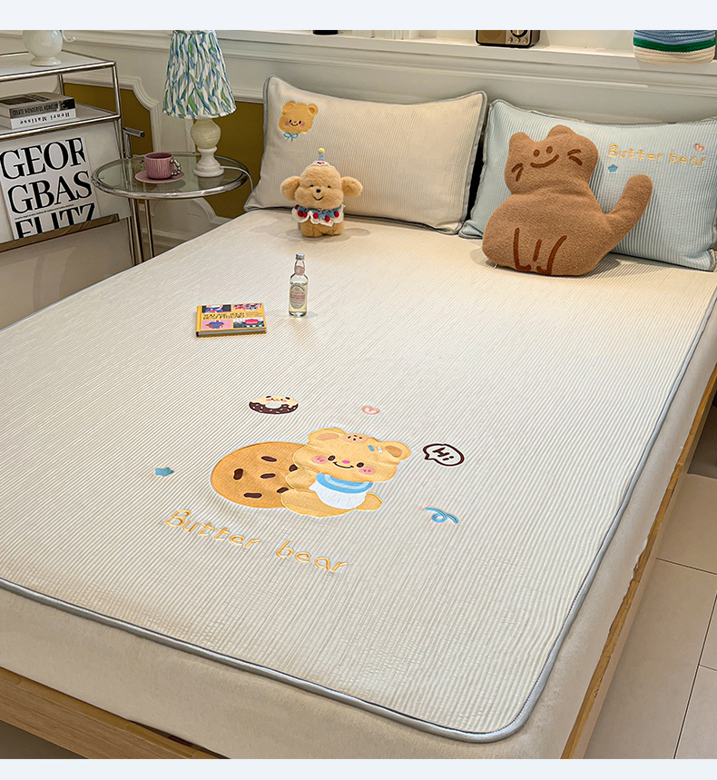 如一 2025春夏新款A类卡通刺绣PE中分子冰豆豆凉感软席凉席席子 床笠款-梦幻汽车