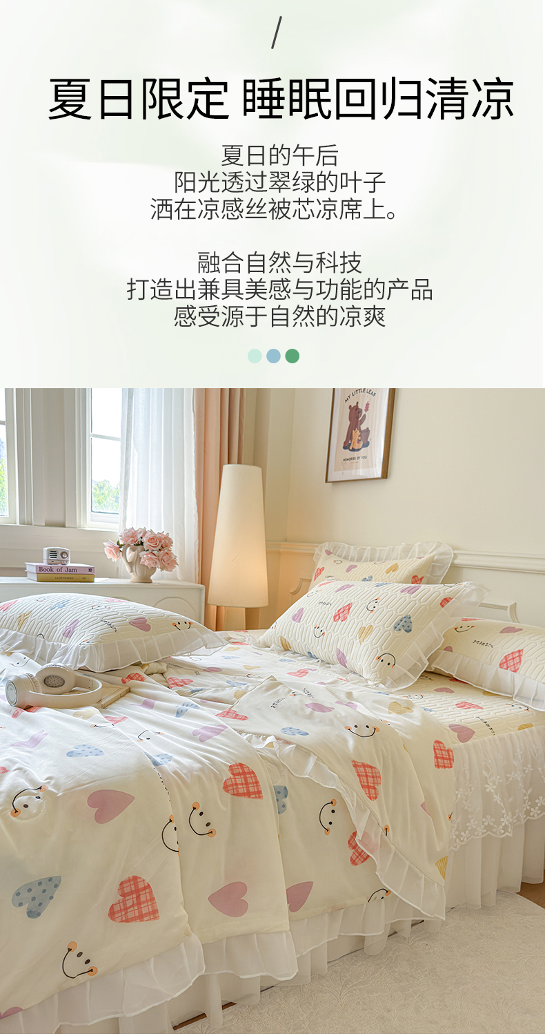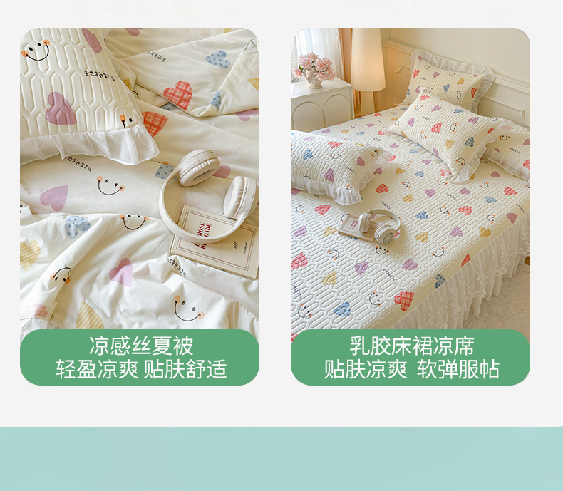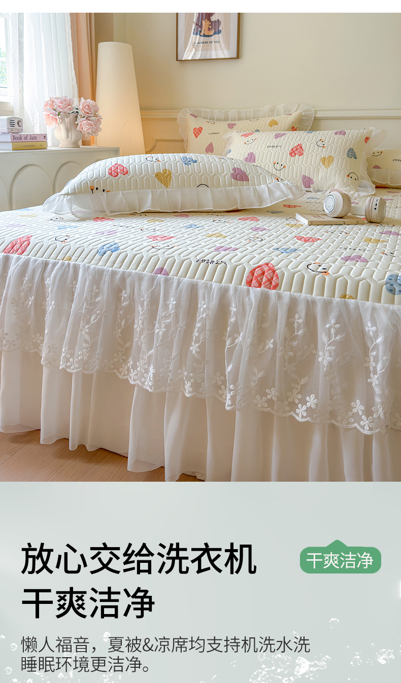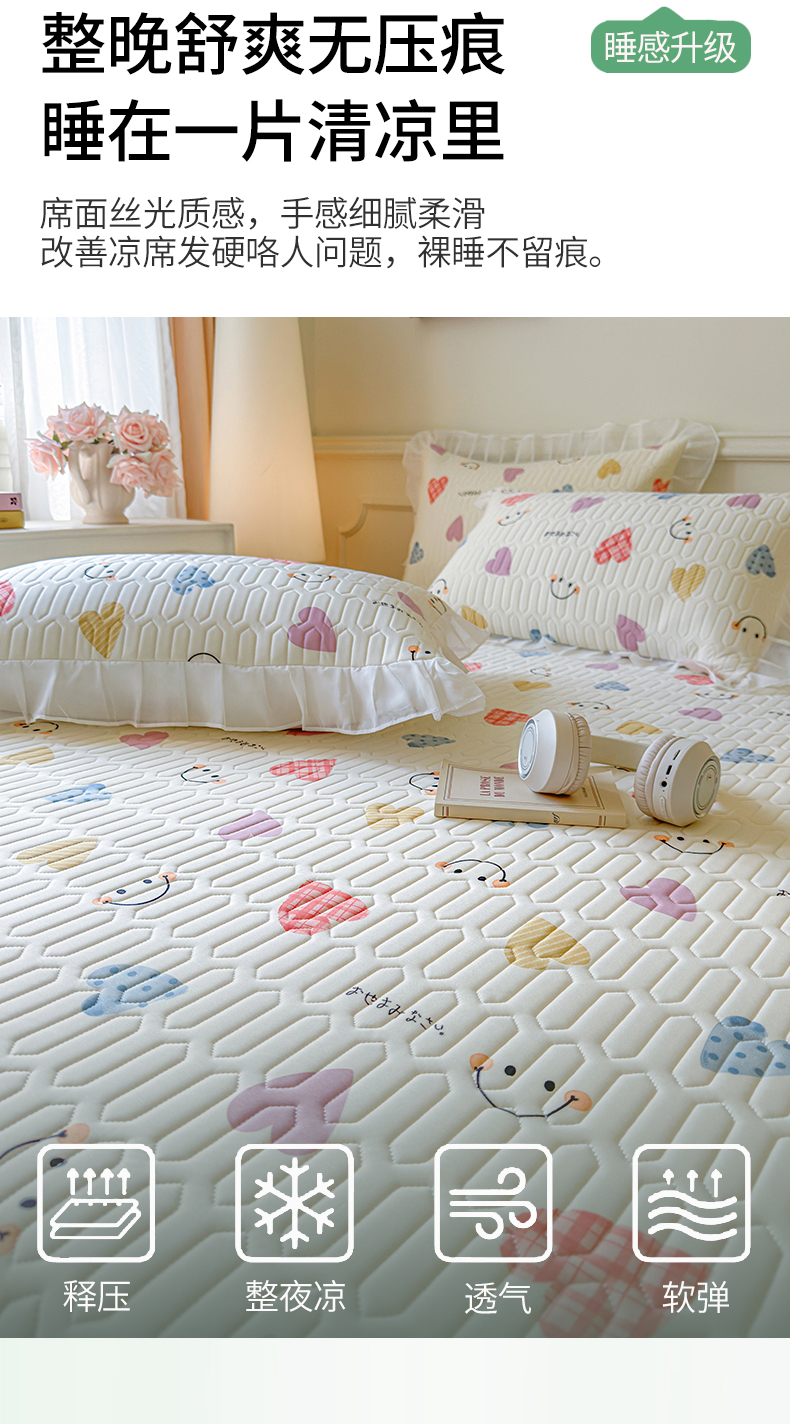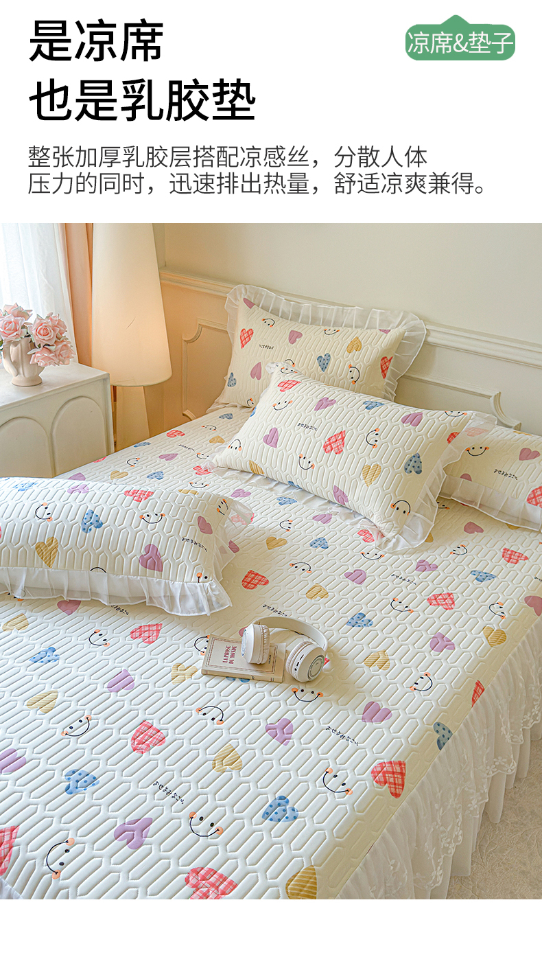 当前位置: 91家纺网 > 商品网购 > 床上用品 > 凉席 > 乳胶凉席 > 网红馆(ck家纺) 2025春夏新款印花凉感丝乳胶床裙凉席空调席夏被空调被 爱心笑脸 粉