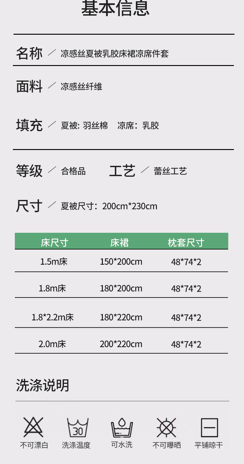 1.5m床:床裙150x200 夏被200x230 枕套一对 | ¥165.00 |