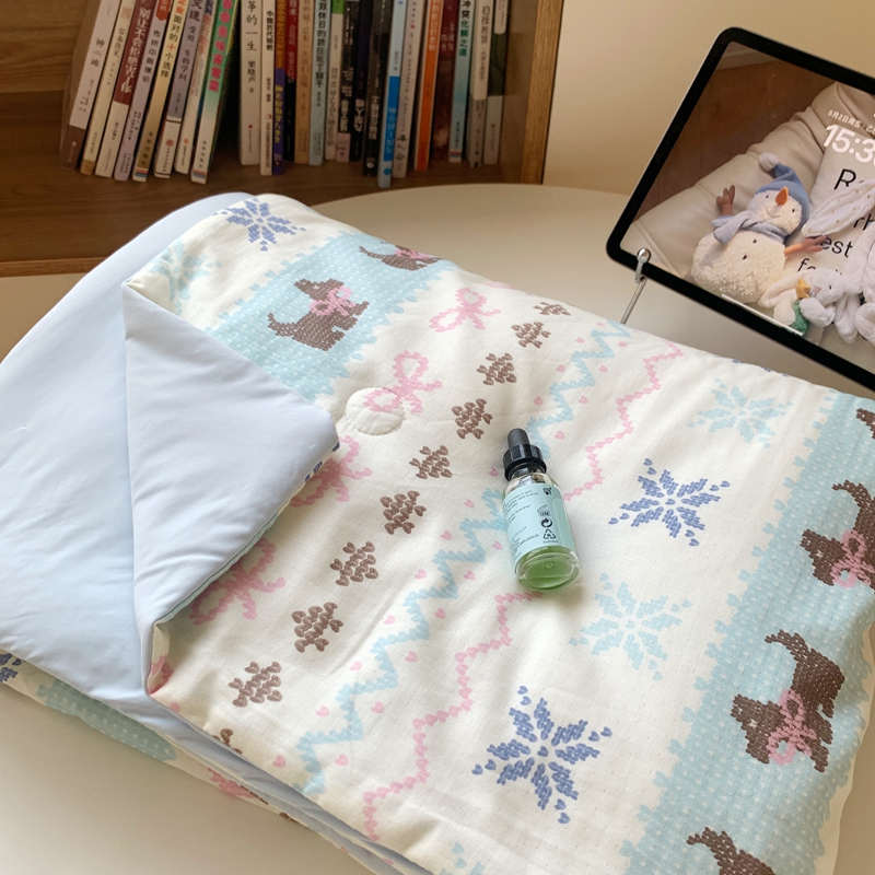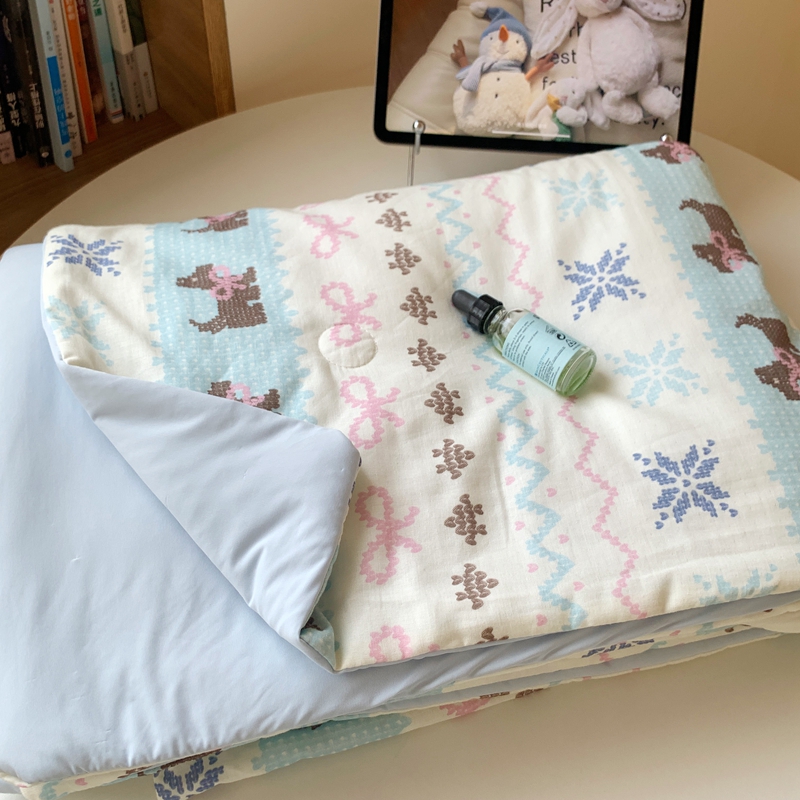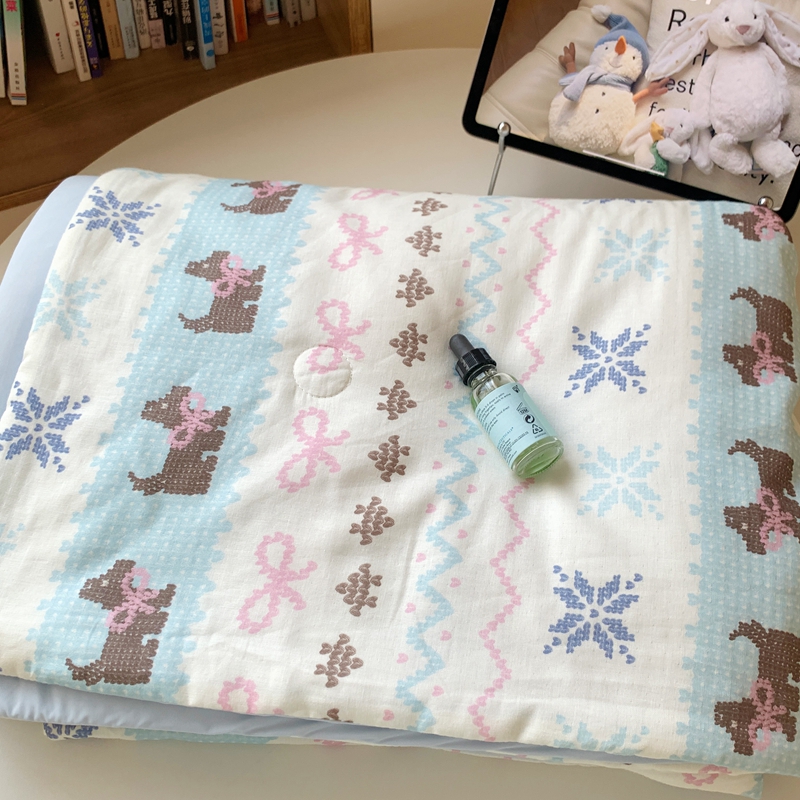 商品名称:桃喜2025新A类 “冰纱”双拼凉感双层纱锦氨夏被夏凉被空调被实拍图 夏被-费尔岛狗狗蓝