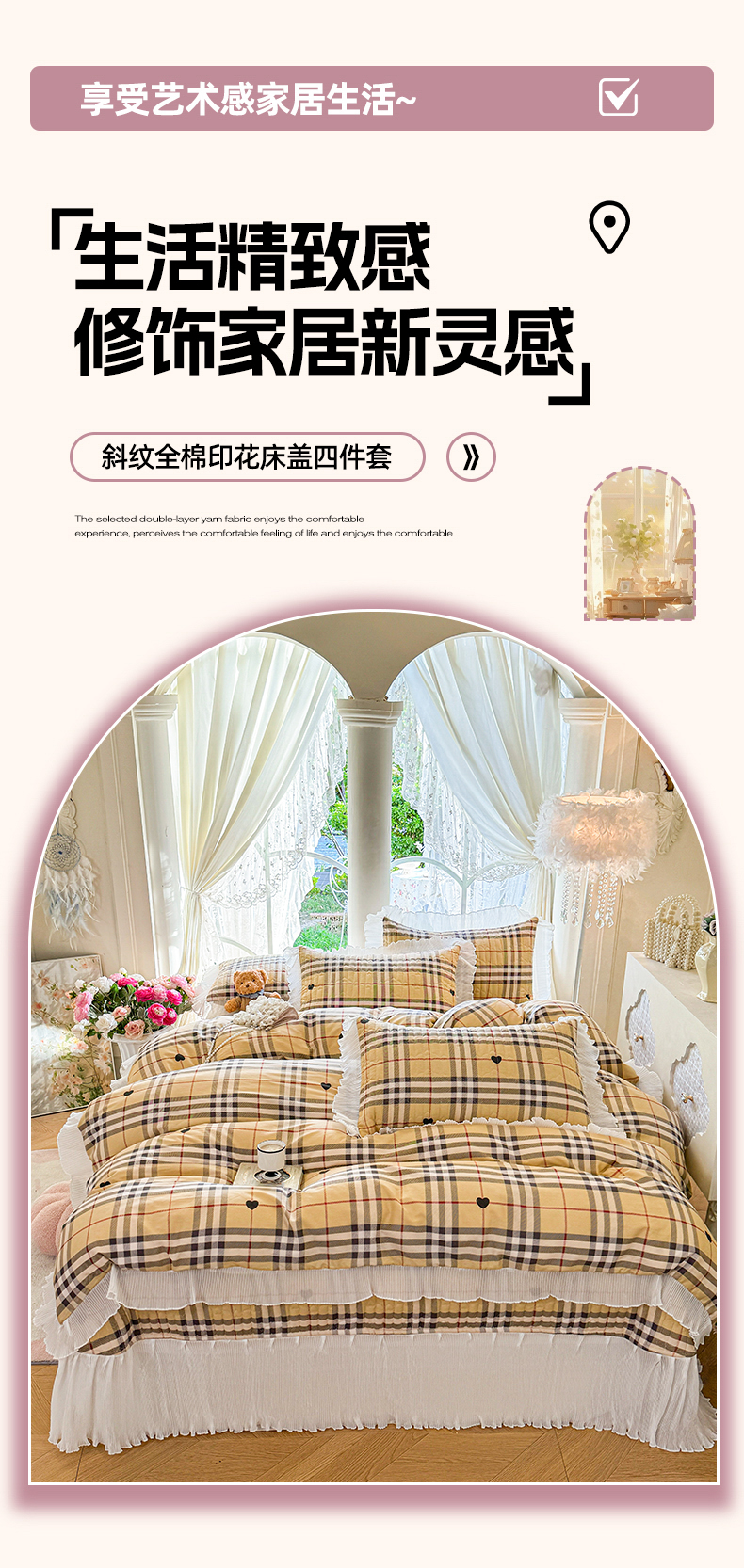 虹星家纺 2025新款斜纹全棉纯棉印花床盖四件套-清甜 清甜-心心相印