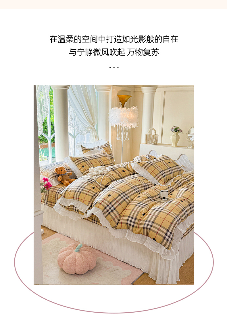 (总)虹星家纺 2025新款雕花牛奶绒床裙四件套-花溪系列,花溪-米黄,花溪-奶油黄