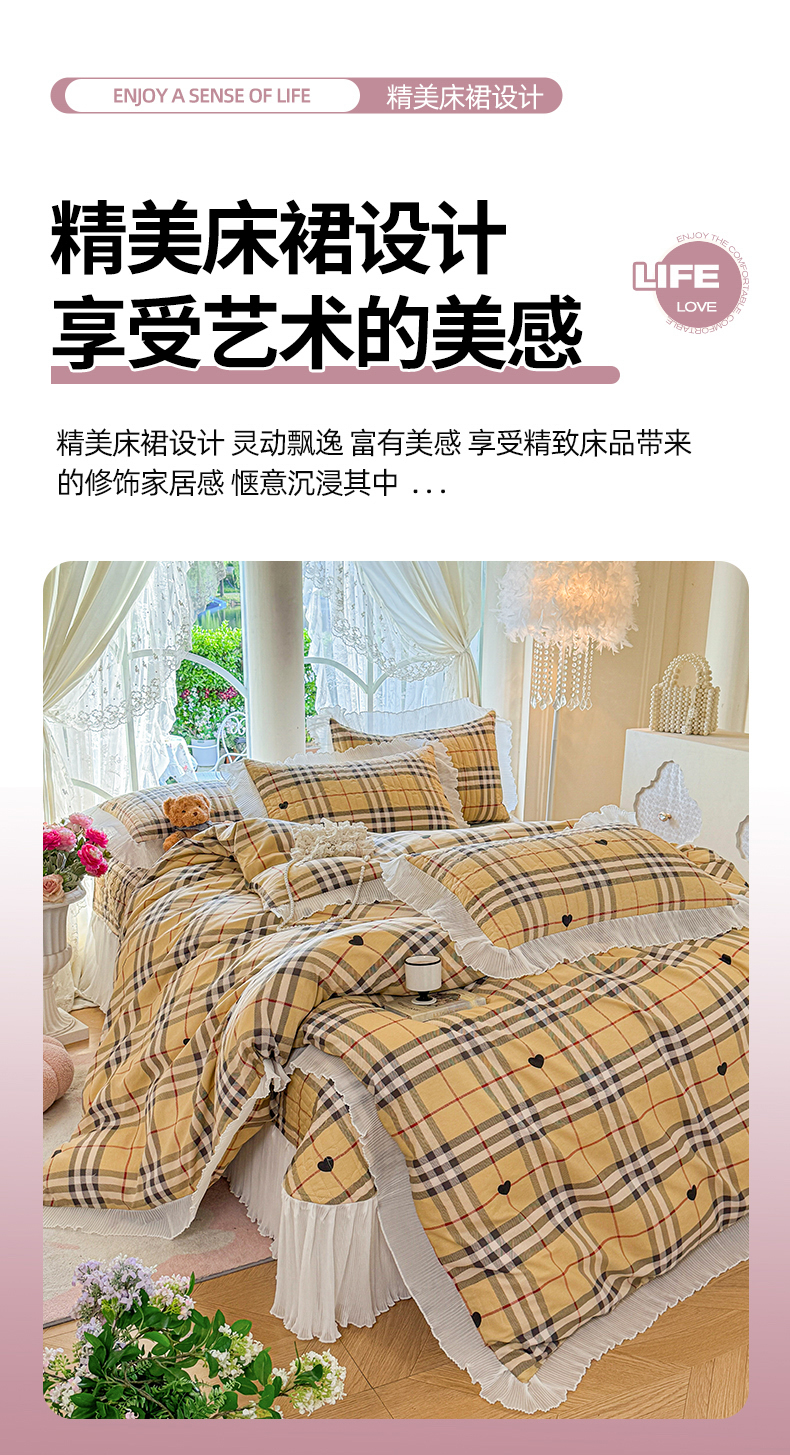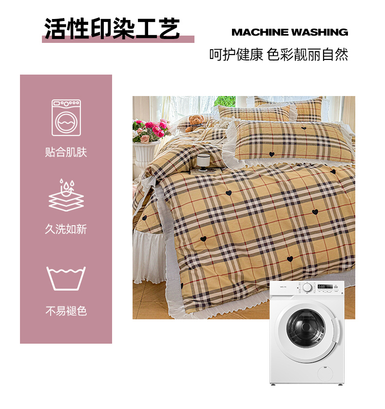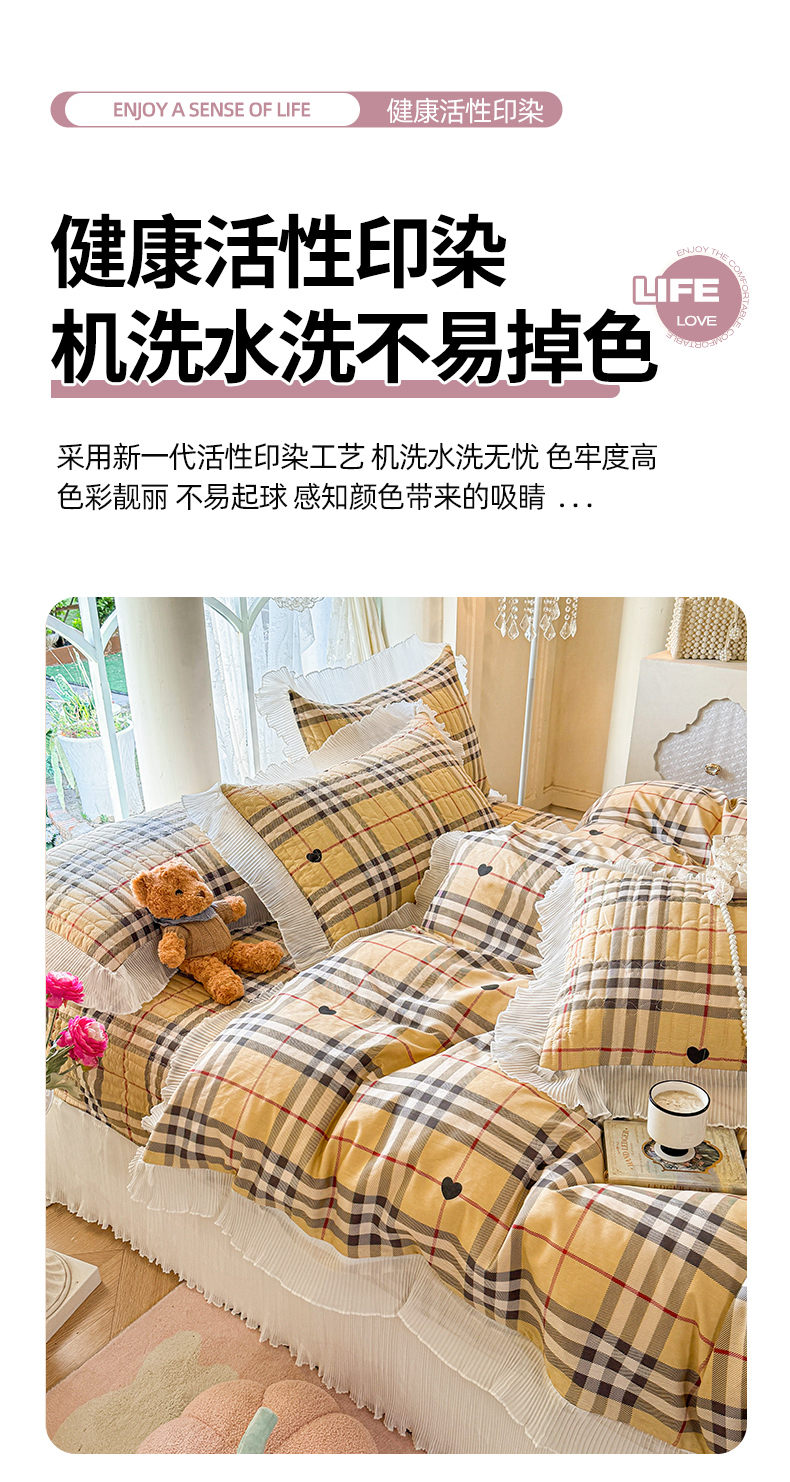 (总)虹星家纺 2024新款A类水洗棉四季款床裙系列套件-四件套,湖水绿,抹茶绿,时尚灰,天空蓝,香妃玉,香蕉黄,香芋紫,樱花粉,云朵白
