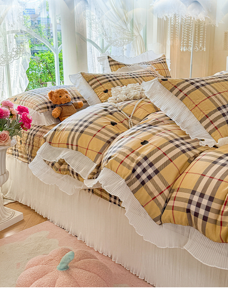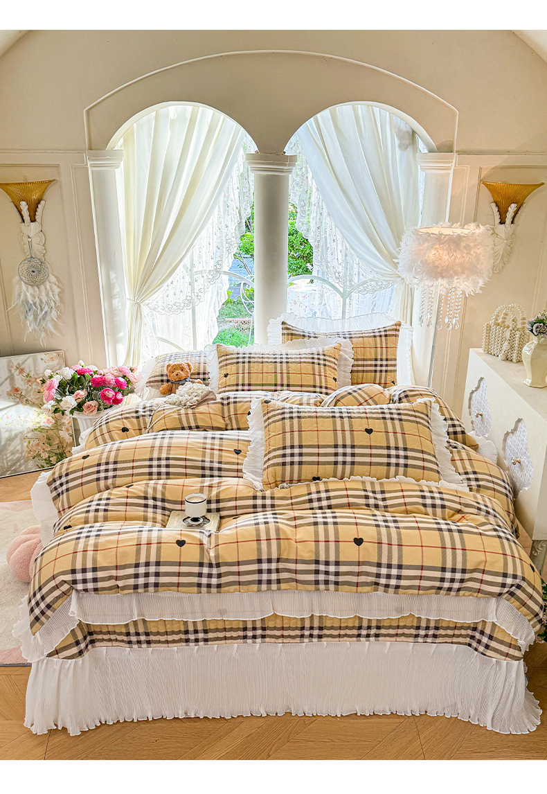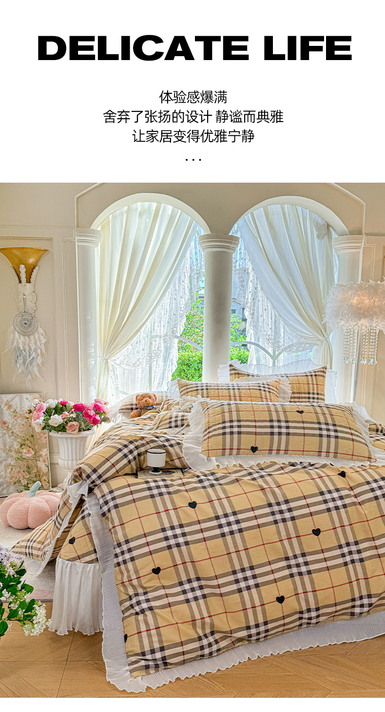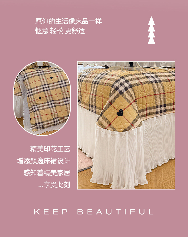 (总)虹星家纺 2024新款A类水洗棉四季款床裙系列套件-四件套,湖水绿,抹茶绿,时尚灰,天空蓝,香妃玉,香蕉黄,香芋紫,樱花粉,云朵白