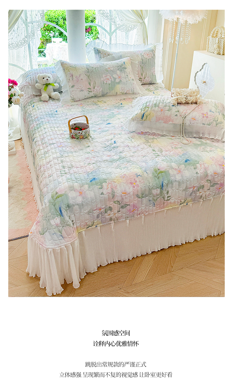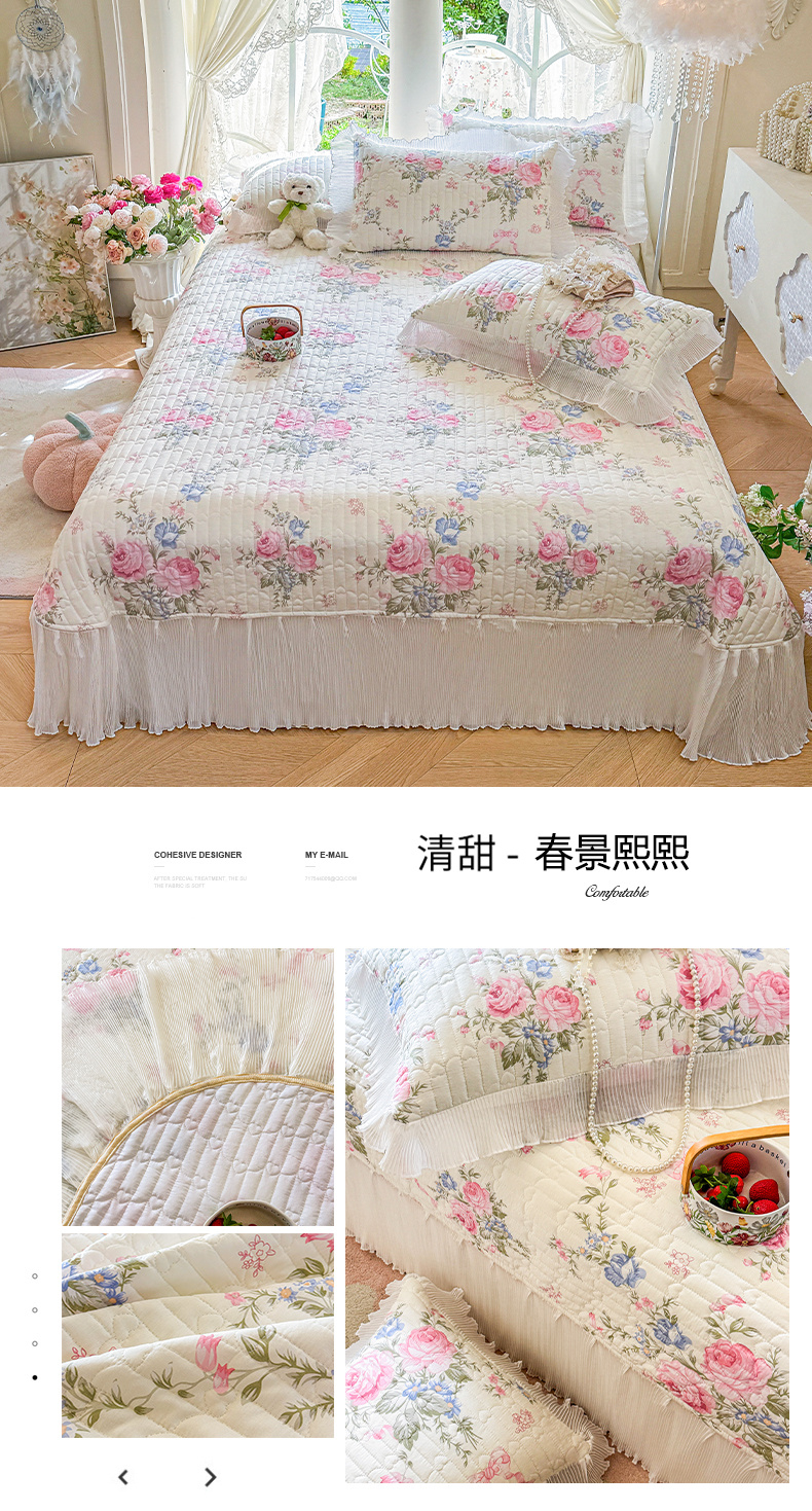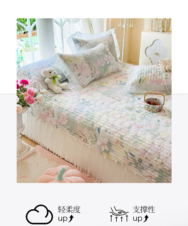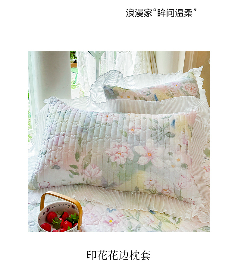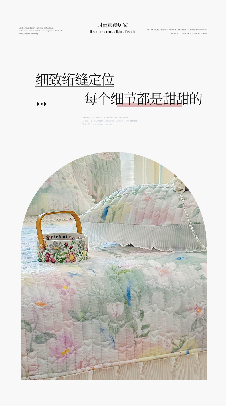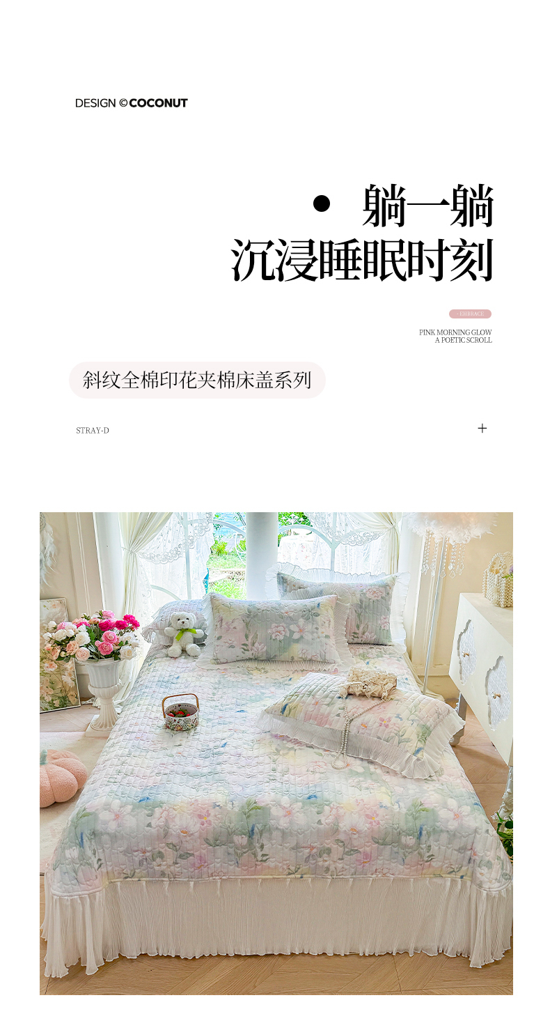 商品名称:虹星家纺 2025新款斜纹全棉纯棉印花床盖-清甜 清甜-满芯花熙