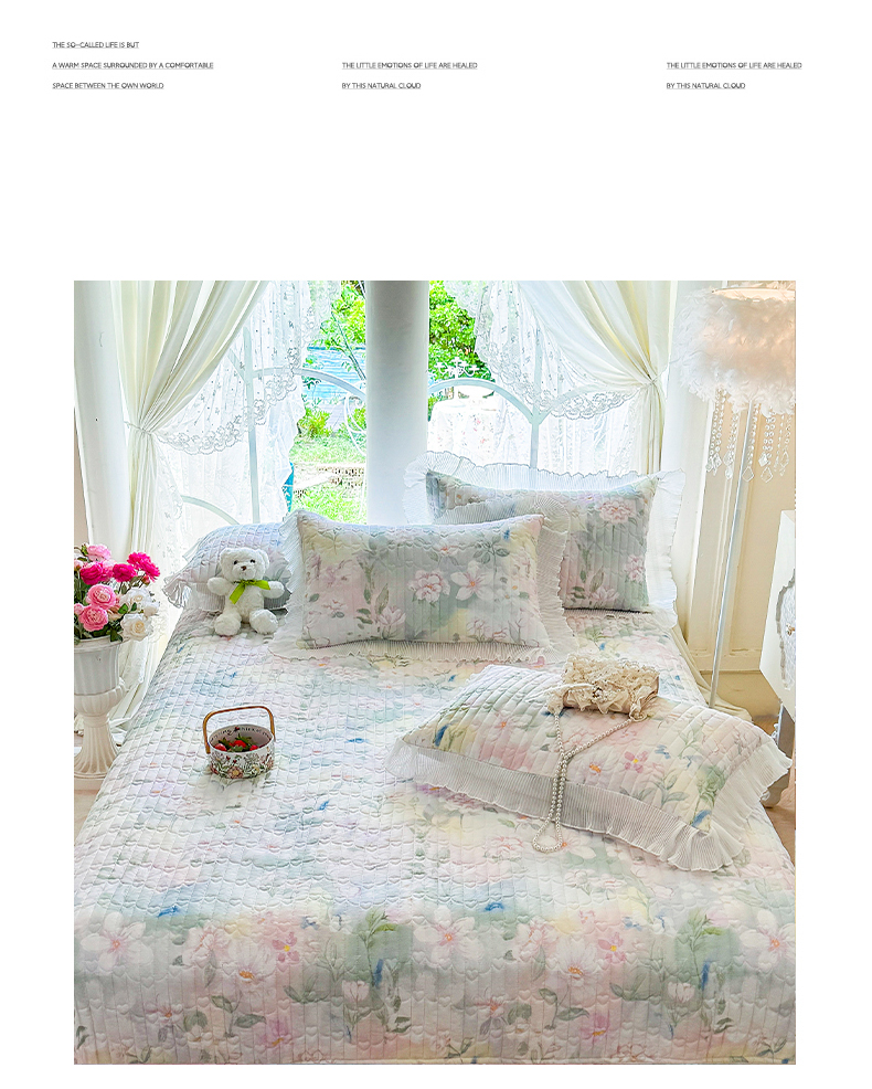 (总)虹星家纺 2025年新款全棉床盖三件套-花影倾梦,花影倾梦-浅米色,花影倾梦-薄荷绿,花影倾梦-天空蓝,花影倾梦-樱花粉,花影倾梦-优雅紫,花影倾梦-云朵白