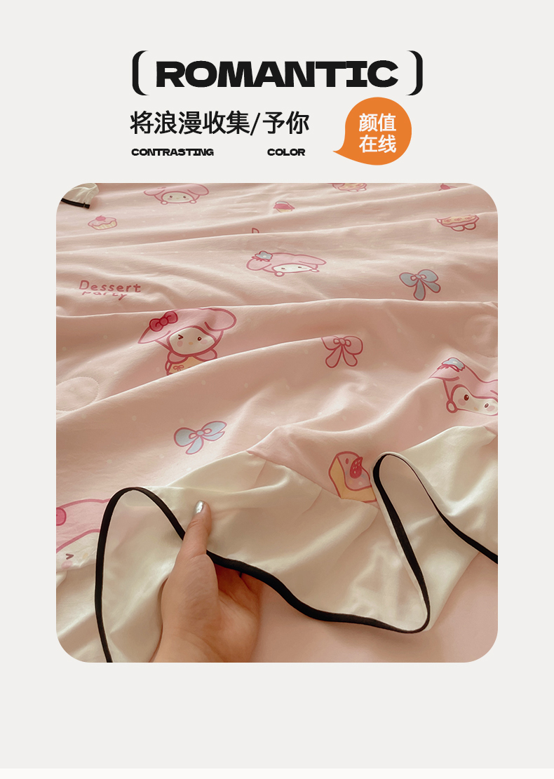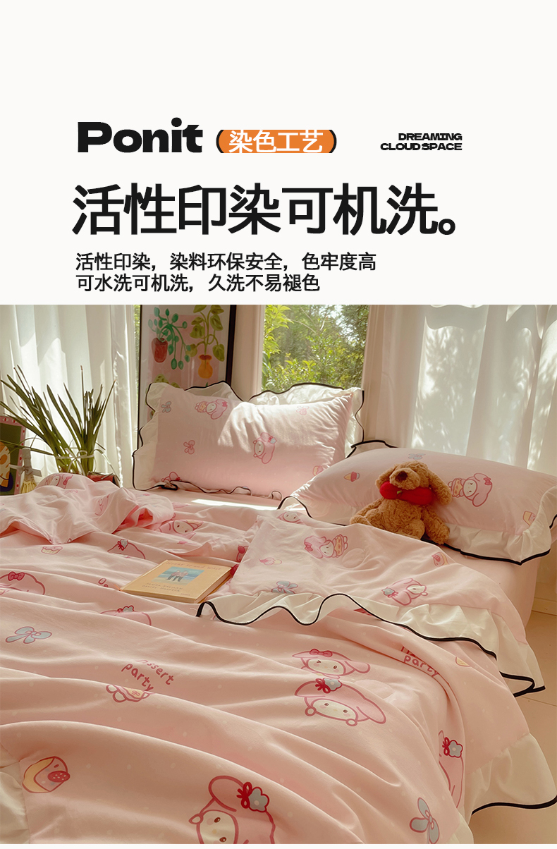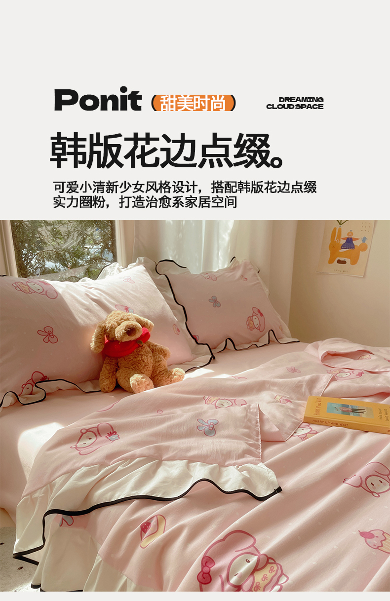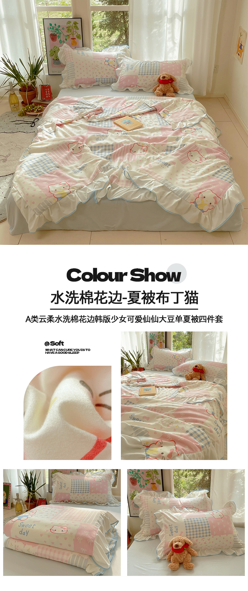 当前位置: 91家纺网 > 商品网购 > 床品套件 > 四件套 > 全棉普通四件套 > 桃心家居 2025新款A类云柔水洗棉花边韩版少女可爱仙仙大豆单夏被夏凉被空调被四件套 水洗棉花边-夏被甜品兔兔