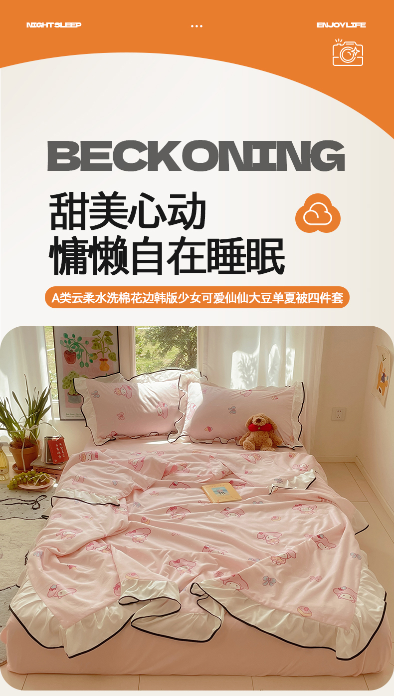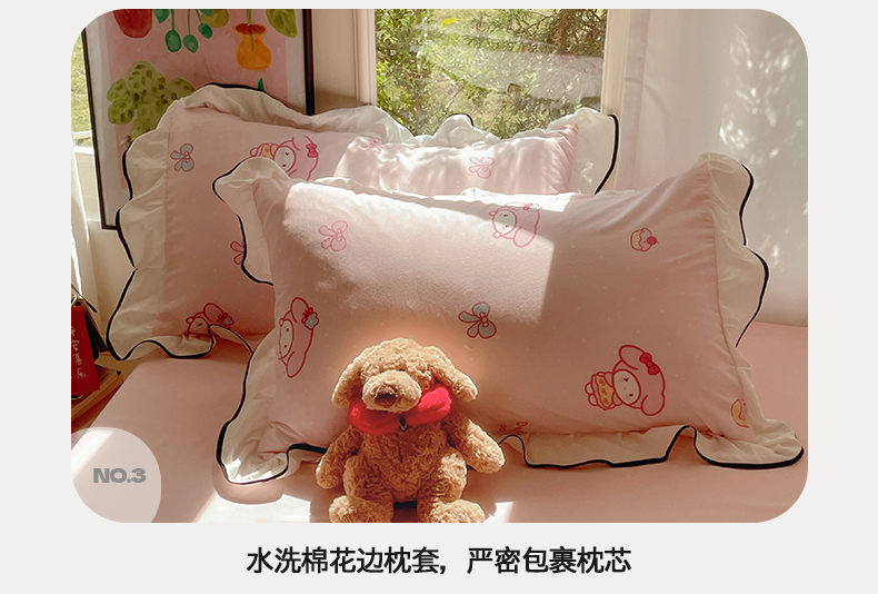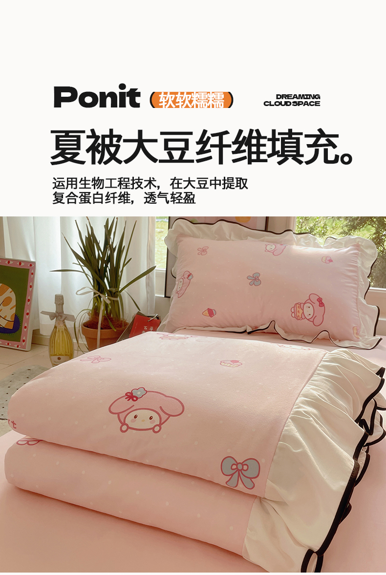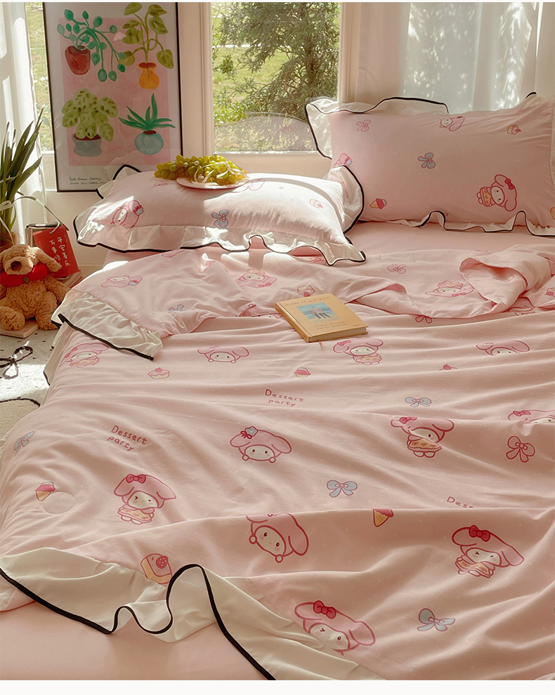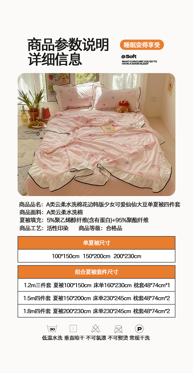 当前位置: 91家纺网 > 商品网购 > 床品套件 > 四件套 > 全棉普通四件套 > 桃心家居 2025新款A类云柔水洗棉花边韩版少女可爱仙仙大豆单夏被夏凉被空调被四件套 水洗棉花边-夏被甜品兔兔