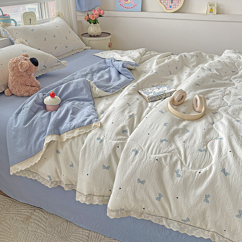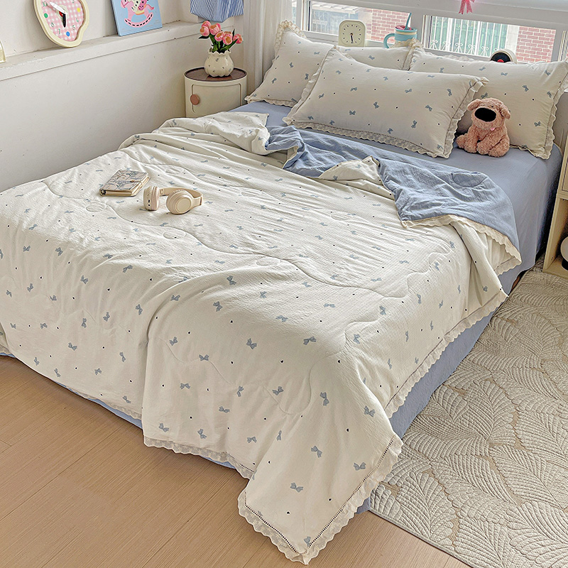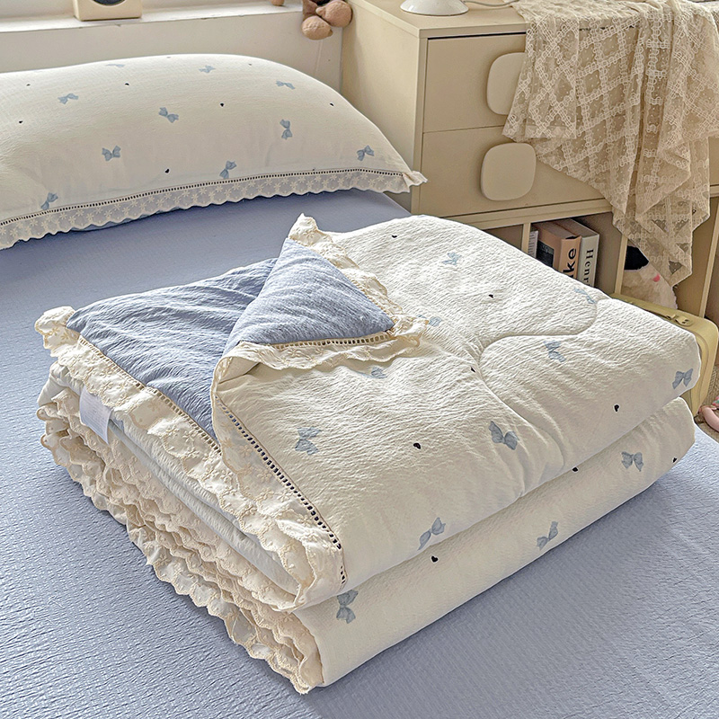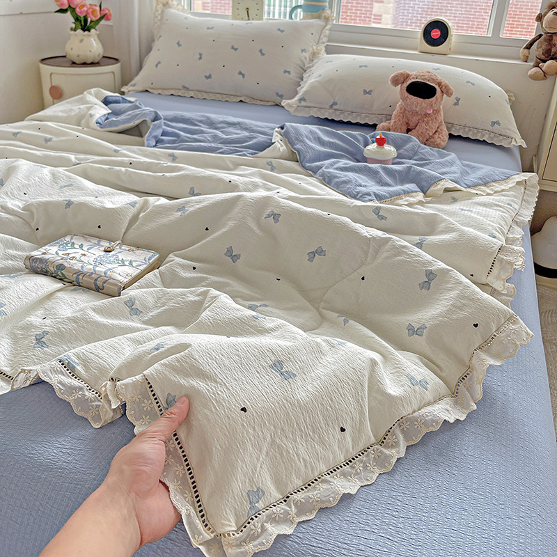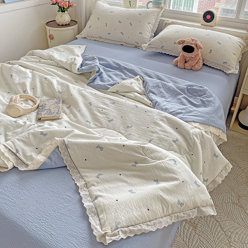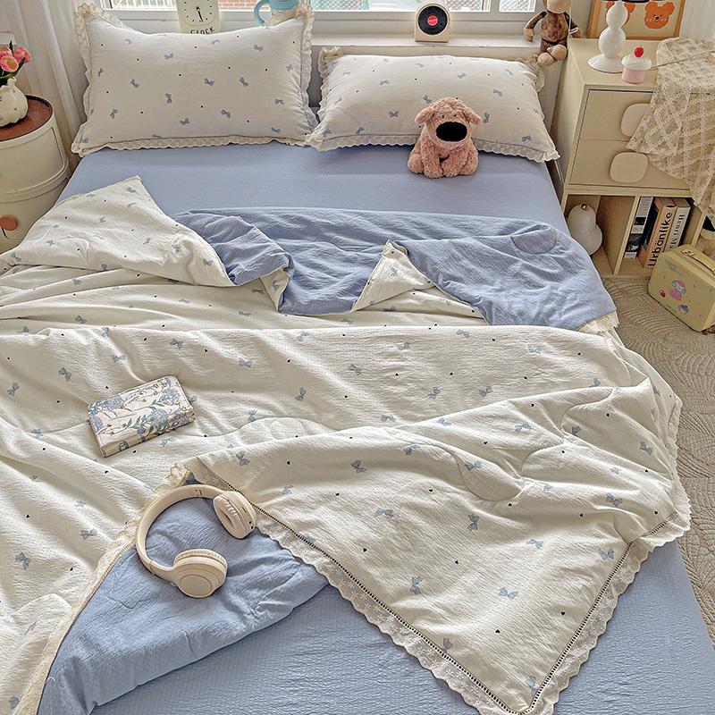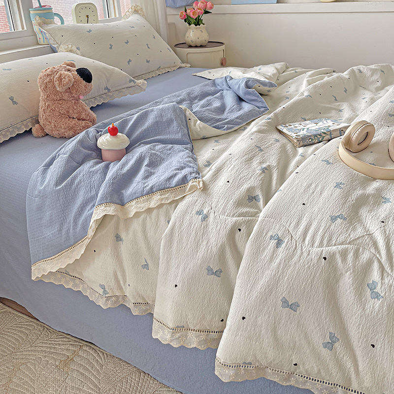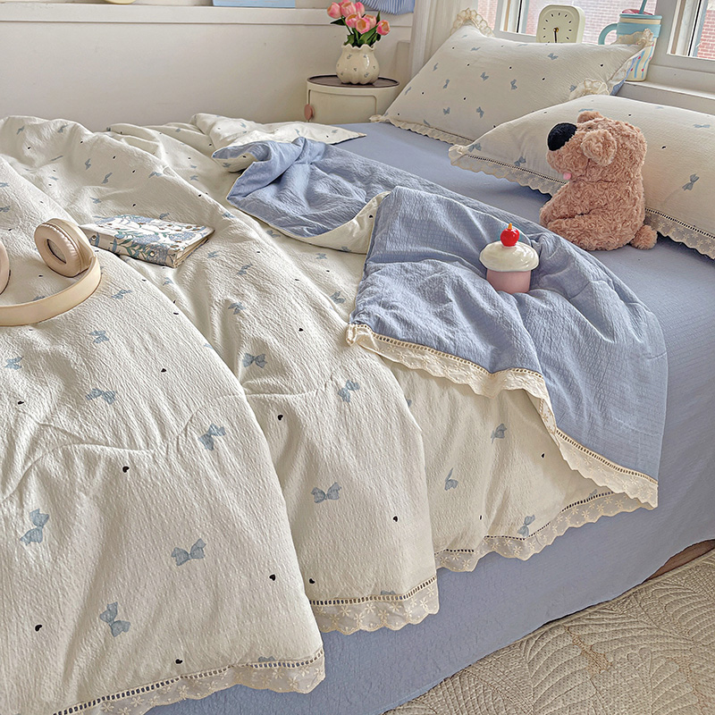 当前位置: 91家纺网 > 商品网购 > 床品套件 > 四件套 > 夏被四件套 > 一比一家纺 2025新款云感皱皱纱全棉花边款夏被四件套【控价109元】夏天
