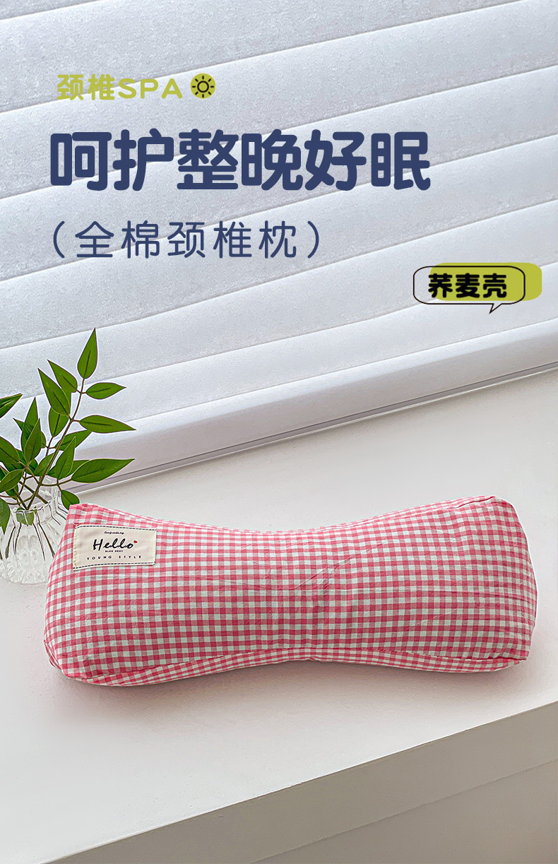 粉格--全棉水洗棉颈椎枕 45x15cm单枕/只
