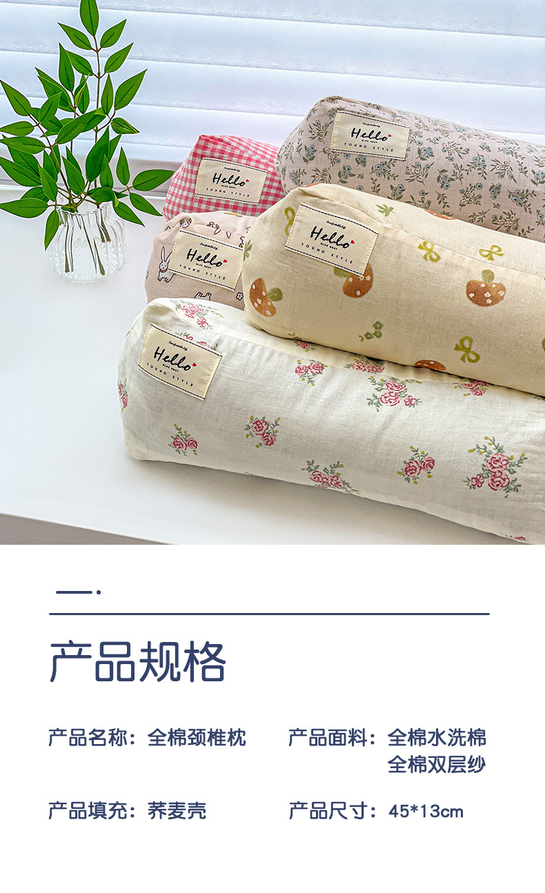 牡丹园-全棉双层纱颈椎枕 45x15cm单枕/对