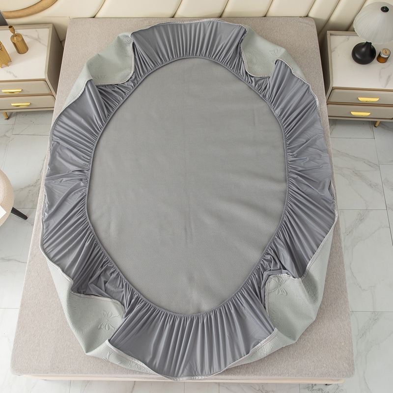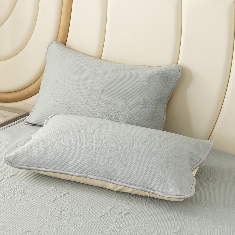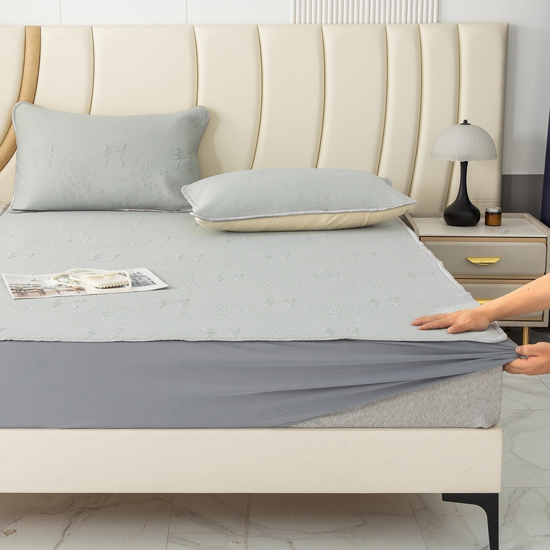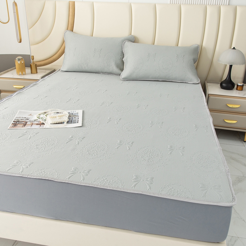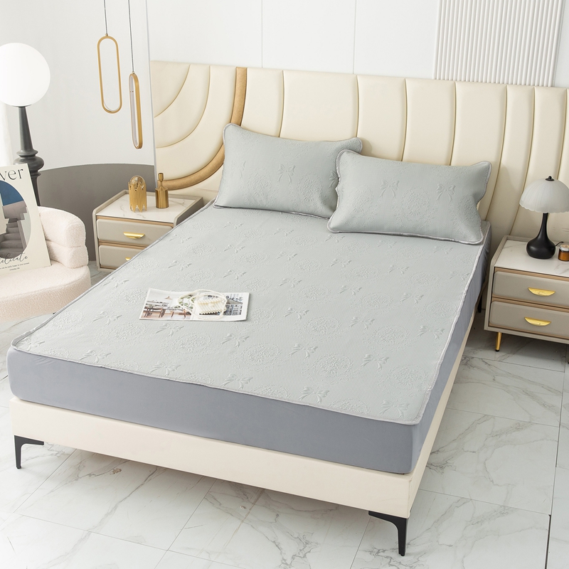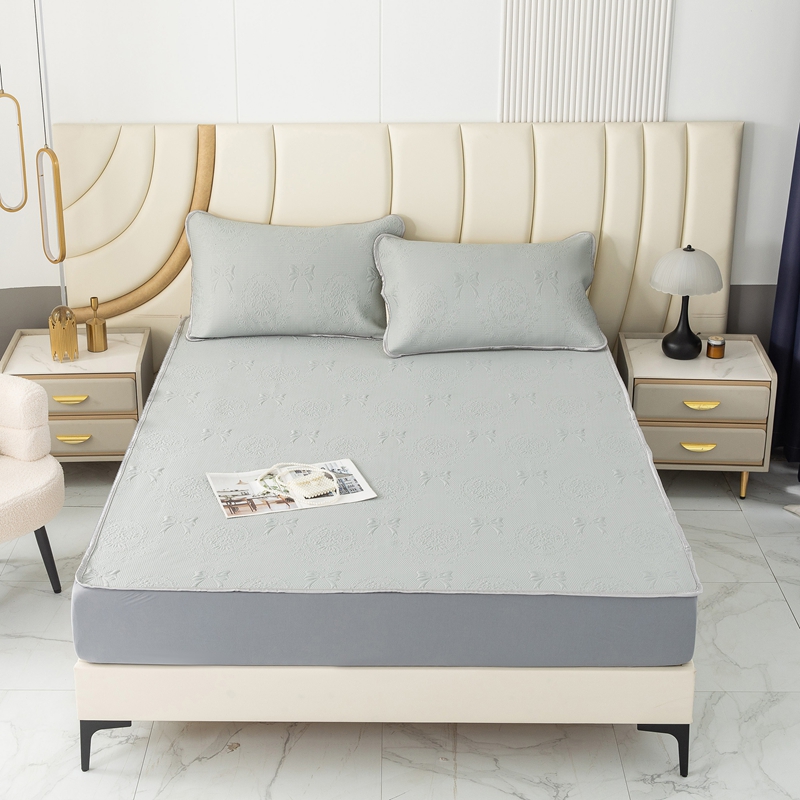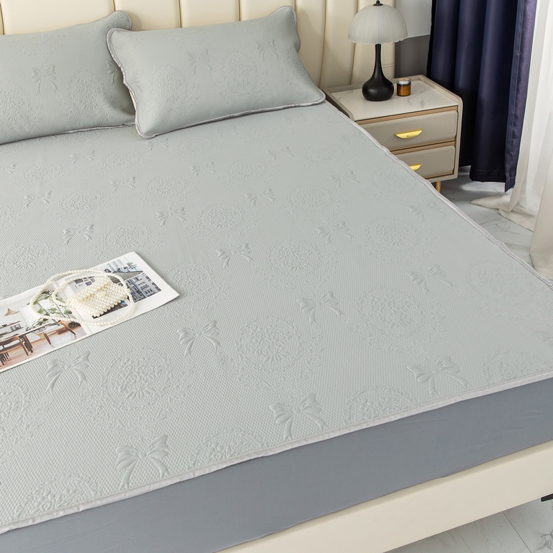 • 91家纺网 家纺一手货源 找家纺 乐居家纺 2025新款中分子PE凉感凉豆豆提花凉席床笠款 灰色-蝴蝶结