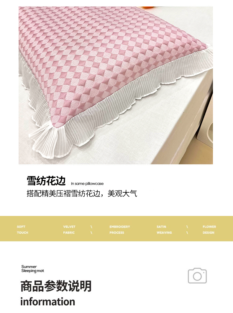 商品名称:芯宜佳 2025年新款冰豆豆花边双人长枕套 小菱形-粉