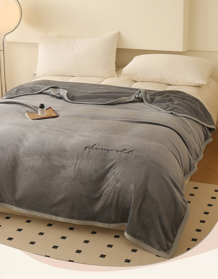 合纵跨境工厂 2025新品绣花牛奶绒毛毯法莱绒雪花绒贝贝绒双面绒毛毯跨境外贸JIT一件代发TEMU亚马逊希音包过核价nice nice深灰