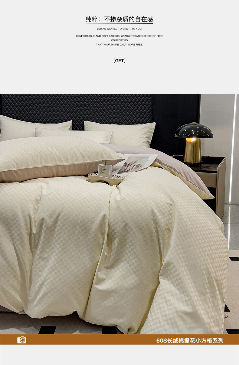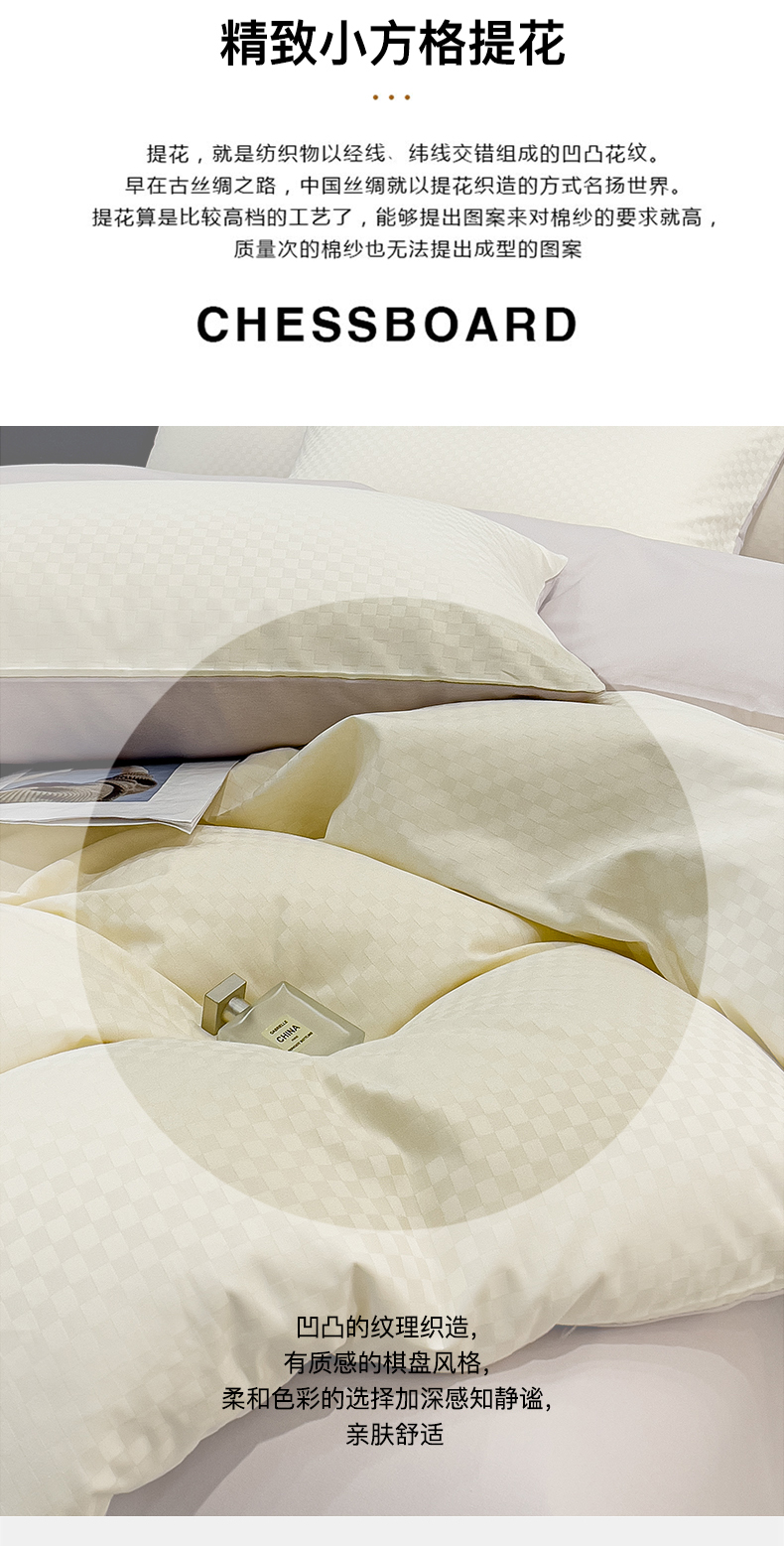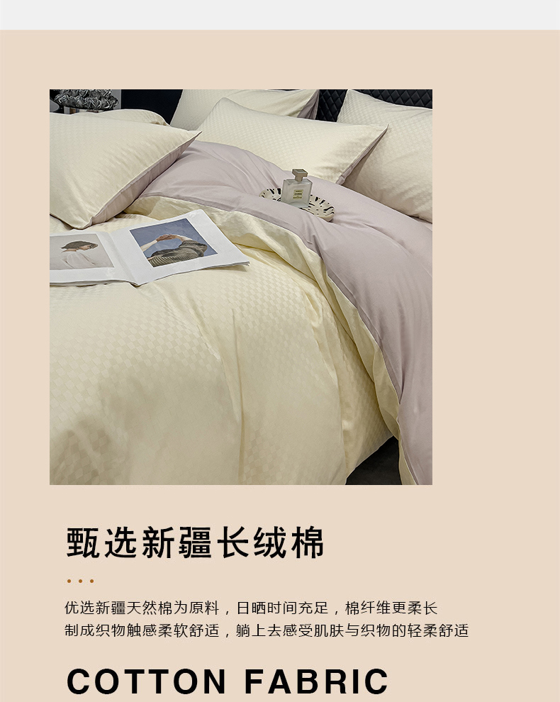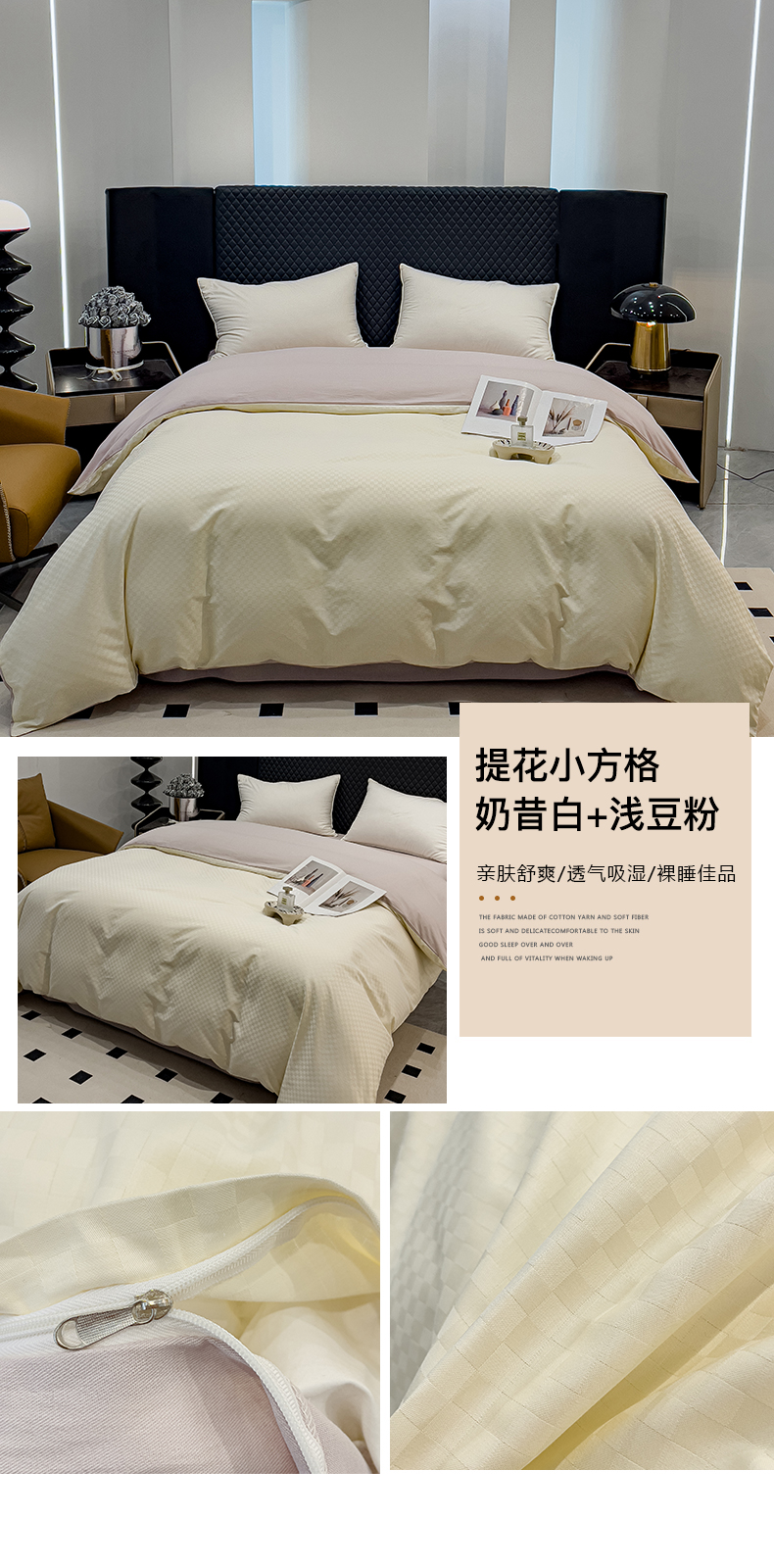金鑫汇家纺 2024新款长绒棉提花小方格系列四件套单品系列-单被套 奶昔白+淡紫