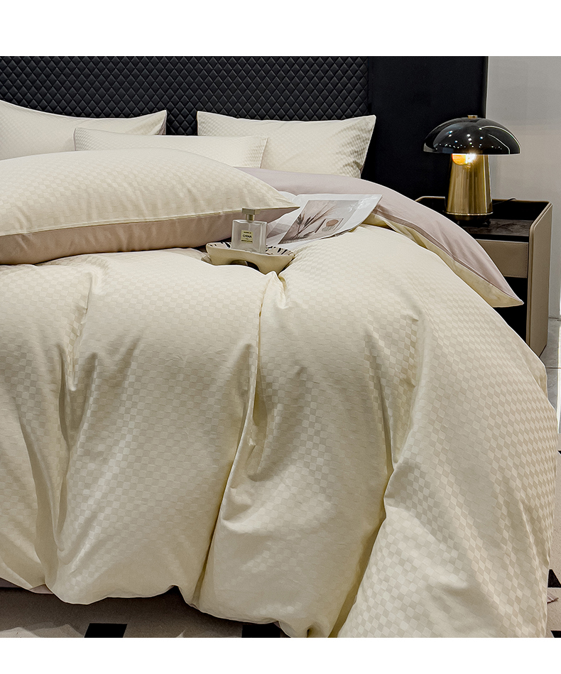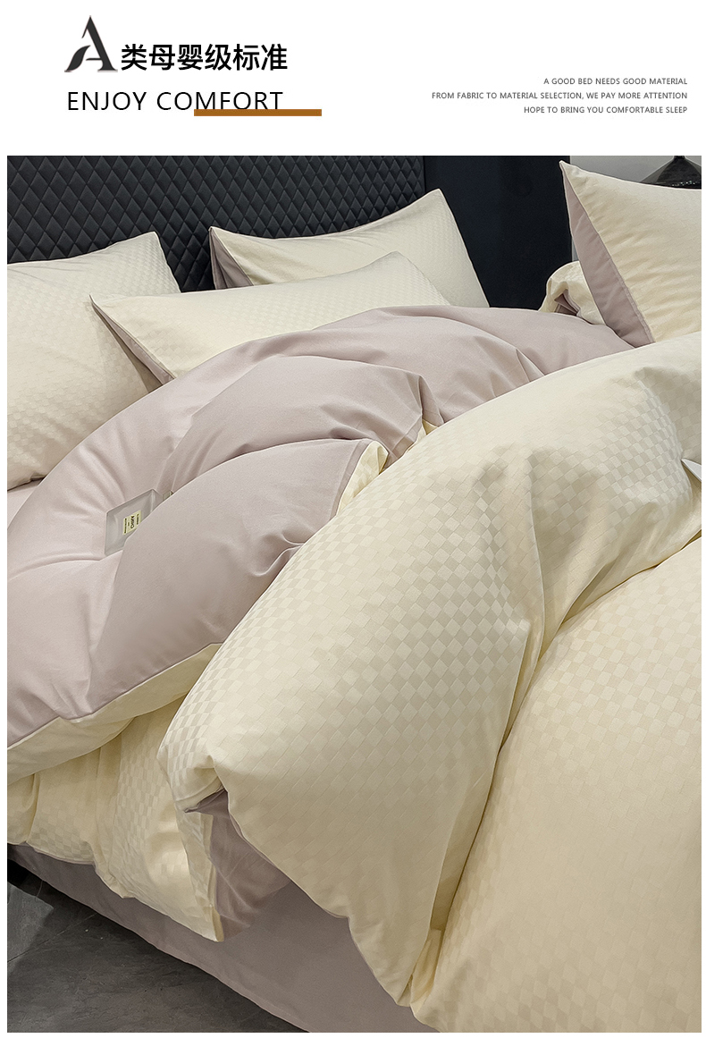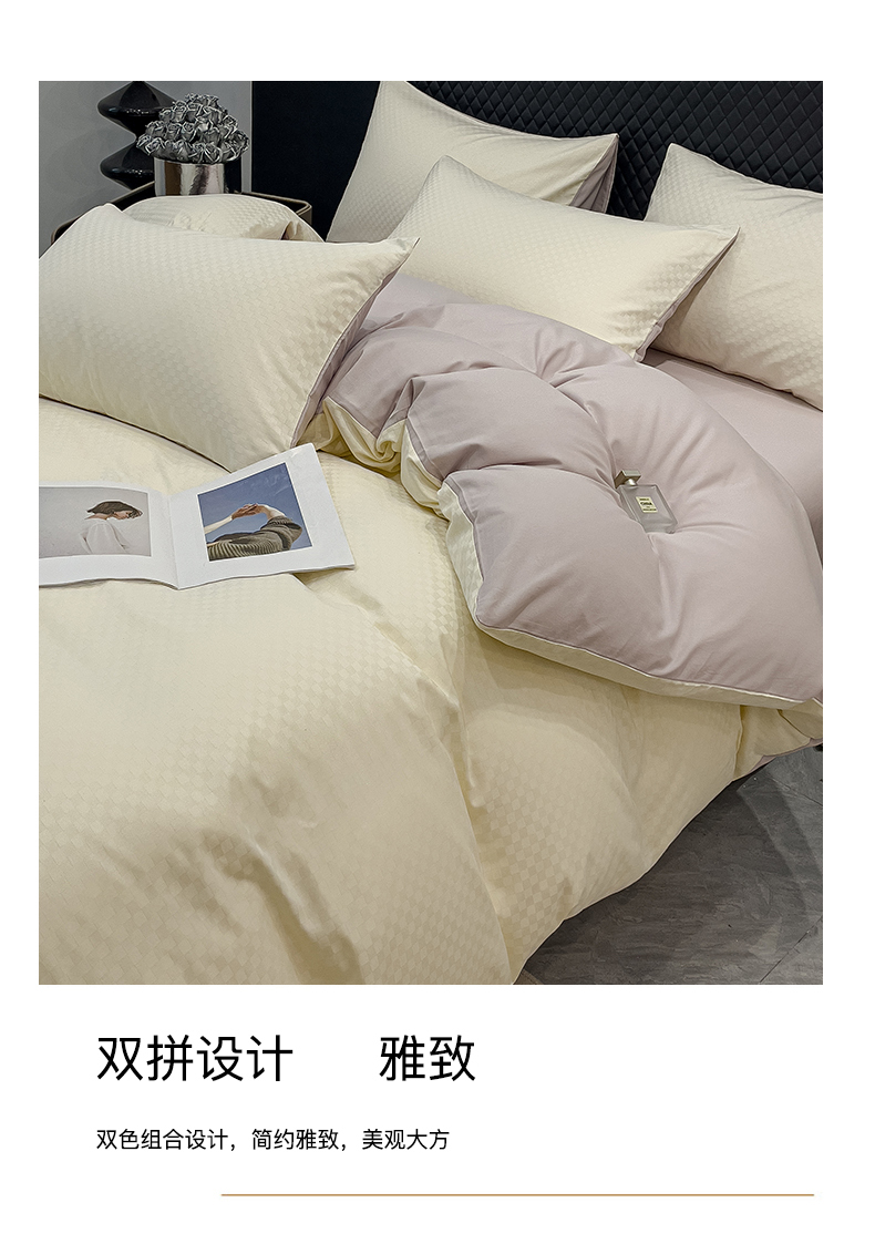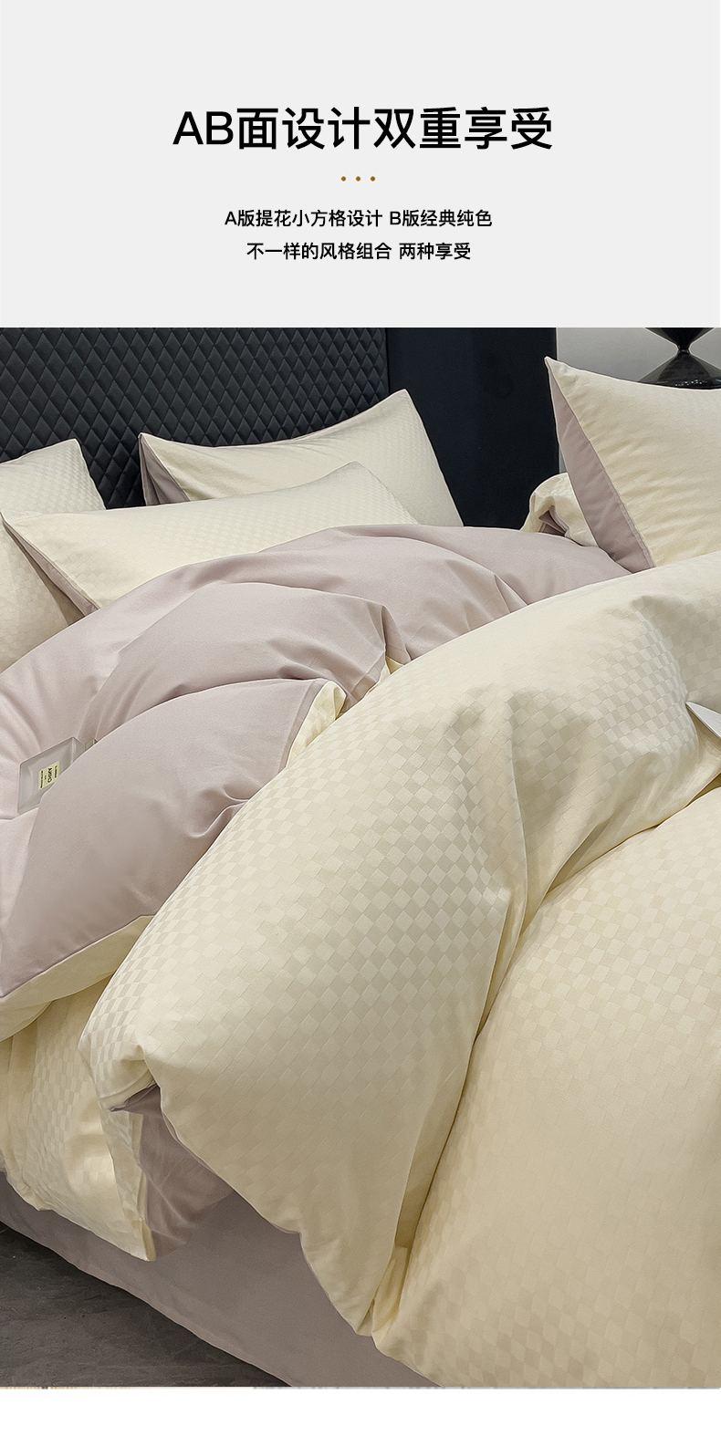 金鑫汇家纺 2024新款长绒棉提花小方格系列四件套单品系列-单被套 奶昔白+淡紫