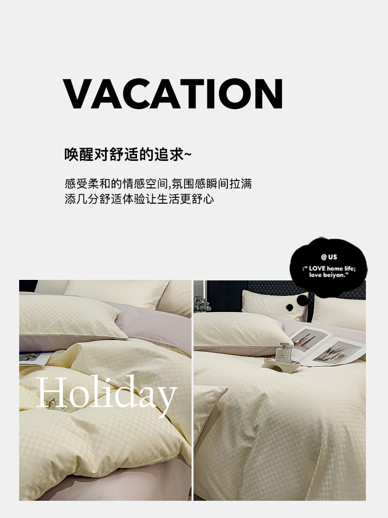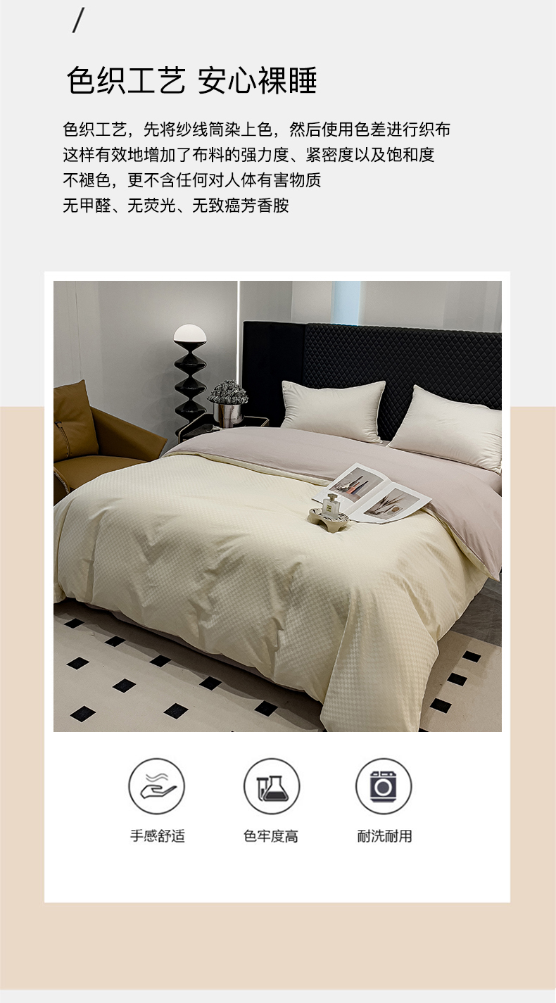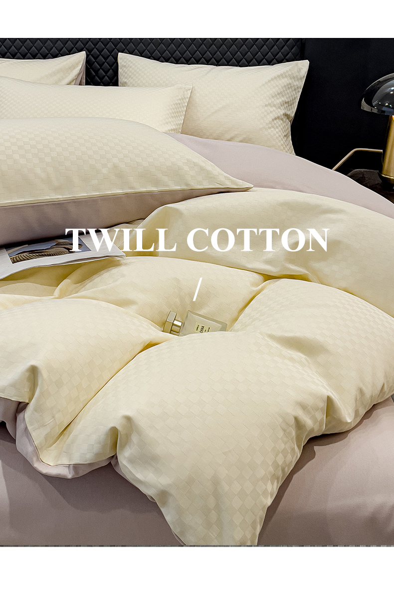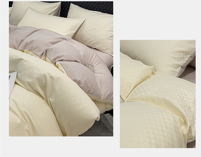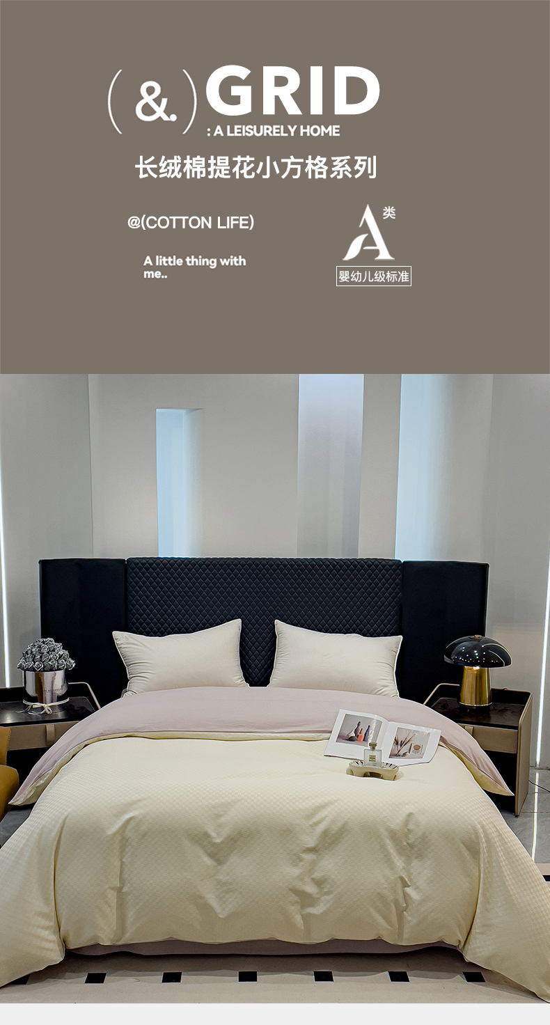 金鑫汇家纺 2024新款长绒棉提花小方格系列四件套单品系列-单被套 奶昔白+淡紫
