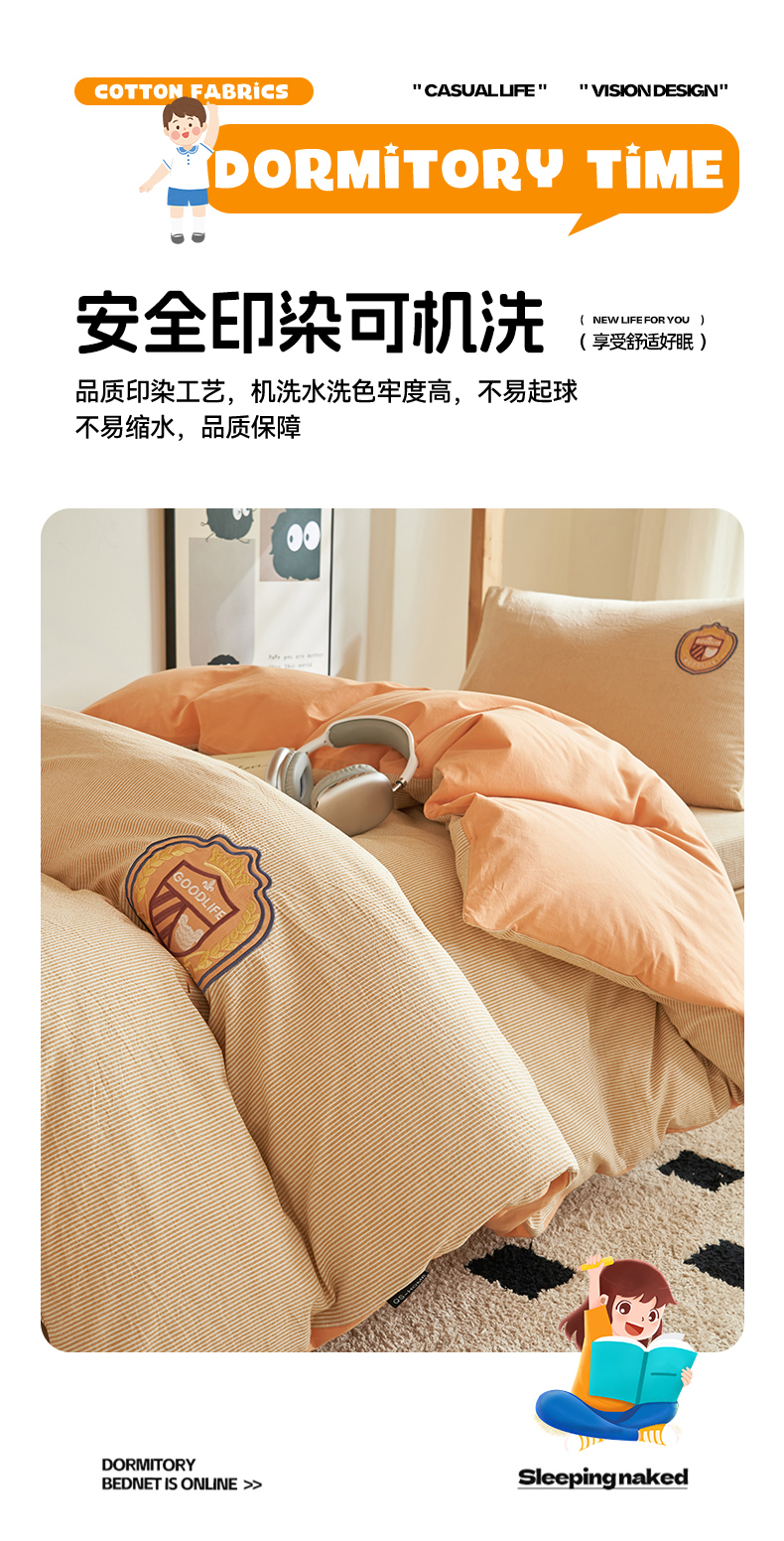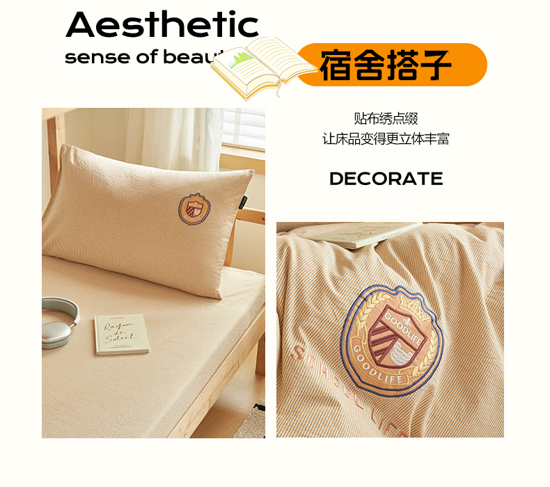 当前位置: 91家纺网 > 商品网购 > 床品套件 > 四件套 > 全棉普通四件套 > 恬思语2025新款全棉色织贴布绣花学生三件套