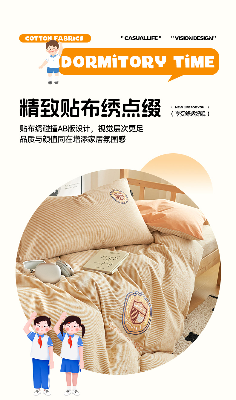 • 91家纺网 家纺一手货源 找家纺 恬思语2025新款全棉色织贴布绣花学生三件套