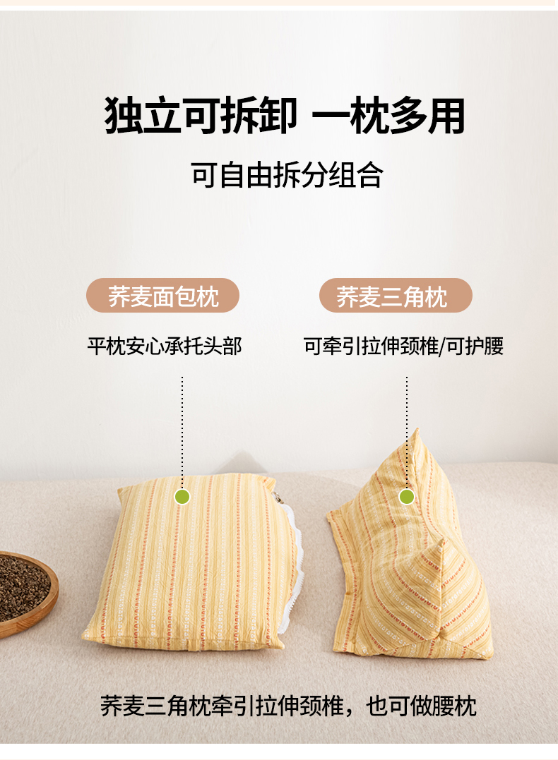 当前位置: 91家纺网 > 商品网购 > 枕头/枕芯/保健枕/颈椎枕 > 普通枕芯 > 萌番宝 2025新款荞麦颈椎枕头可拆卸组合枕芯牵引护颈椎疼痛助睡眠成人专用三角枕枕头枕芯 荞麦护颈黄色 35x16cm三角枕+35x20cm方枕二合一