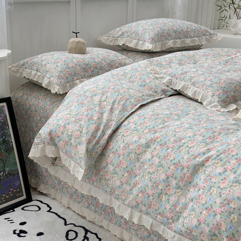 商品名称:佰织鑫2025新款纯棉砂洗全棉床盖款四件套-花蔓系列 花溪~绿