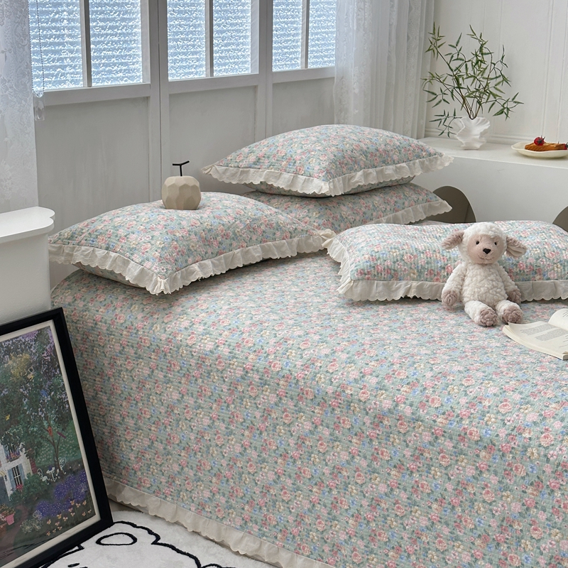 佰织鑫2025新款纯棉砂洗全棉床盖款四件套-花蔓系列 花溪~绿