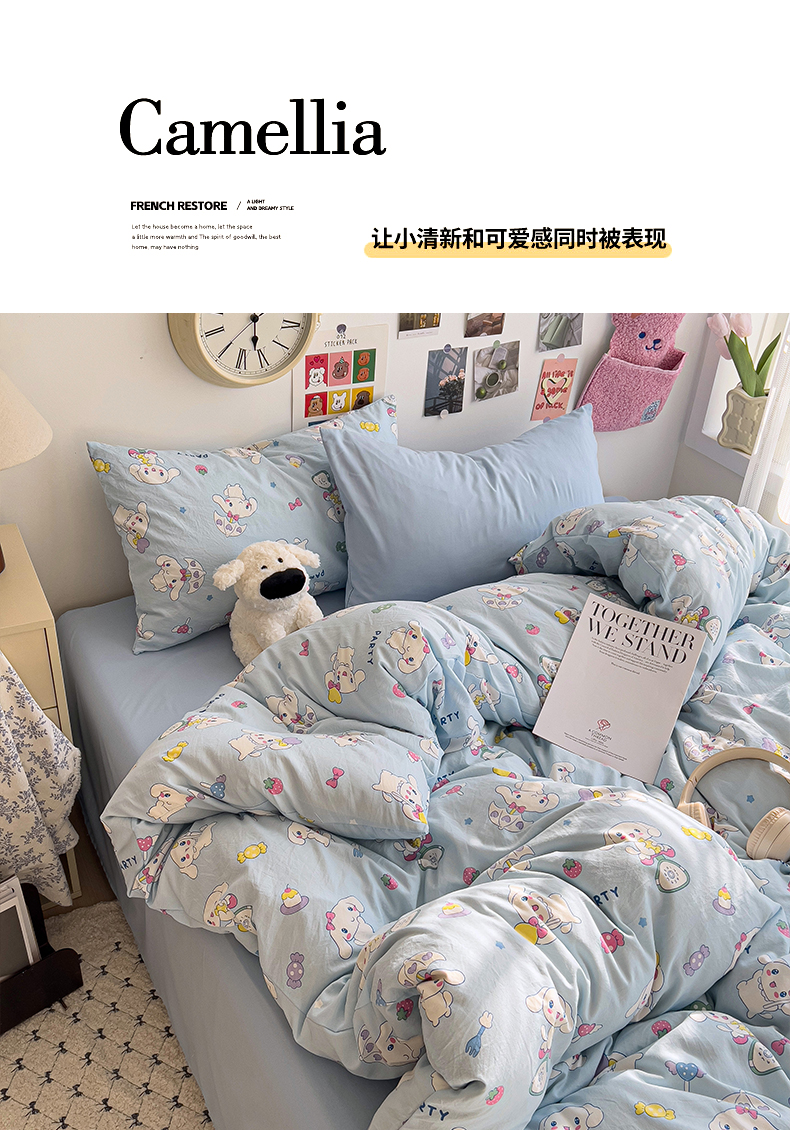 当前位置: 91家纺网 > 商品网购 > 床品套件 > 四件套 > 水洗棉四件套 > 韩巢家纺 2025新款水洗棉印花被套床单四件套学生宿舍床上三件套 -提供卖家秀 糖果小白