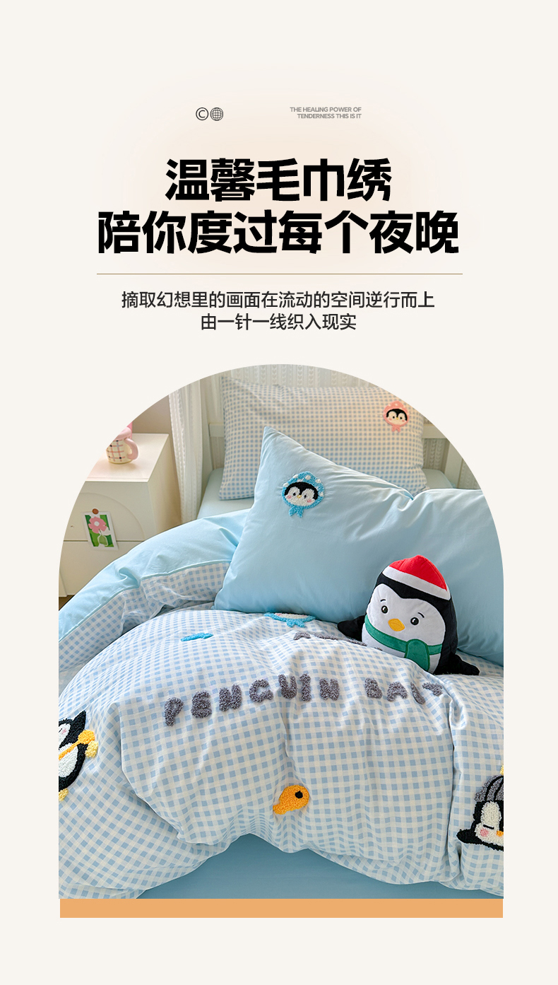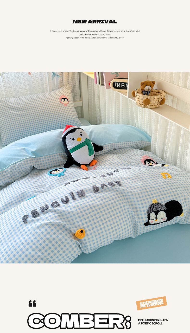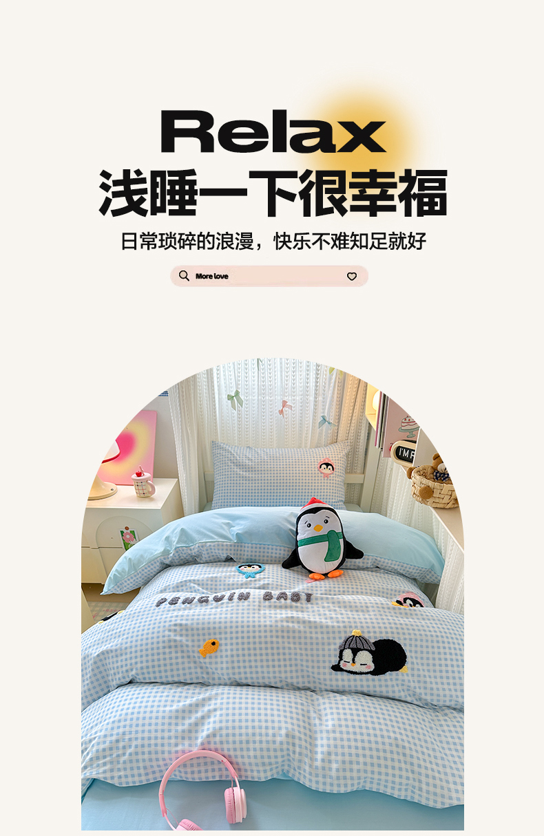 当前位置: 91家纺网 > 商品网购 > 床品套件 > 四件套 > 全棉普通四件套 > 如意朵 2025新款全棉小清新绣花学生季三四件套 企鹅抱抱
