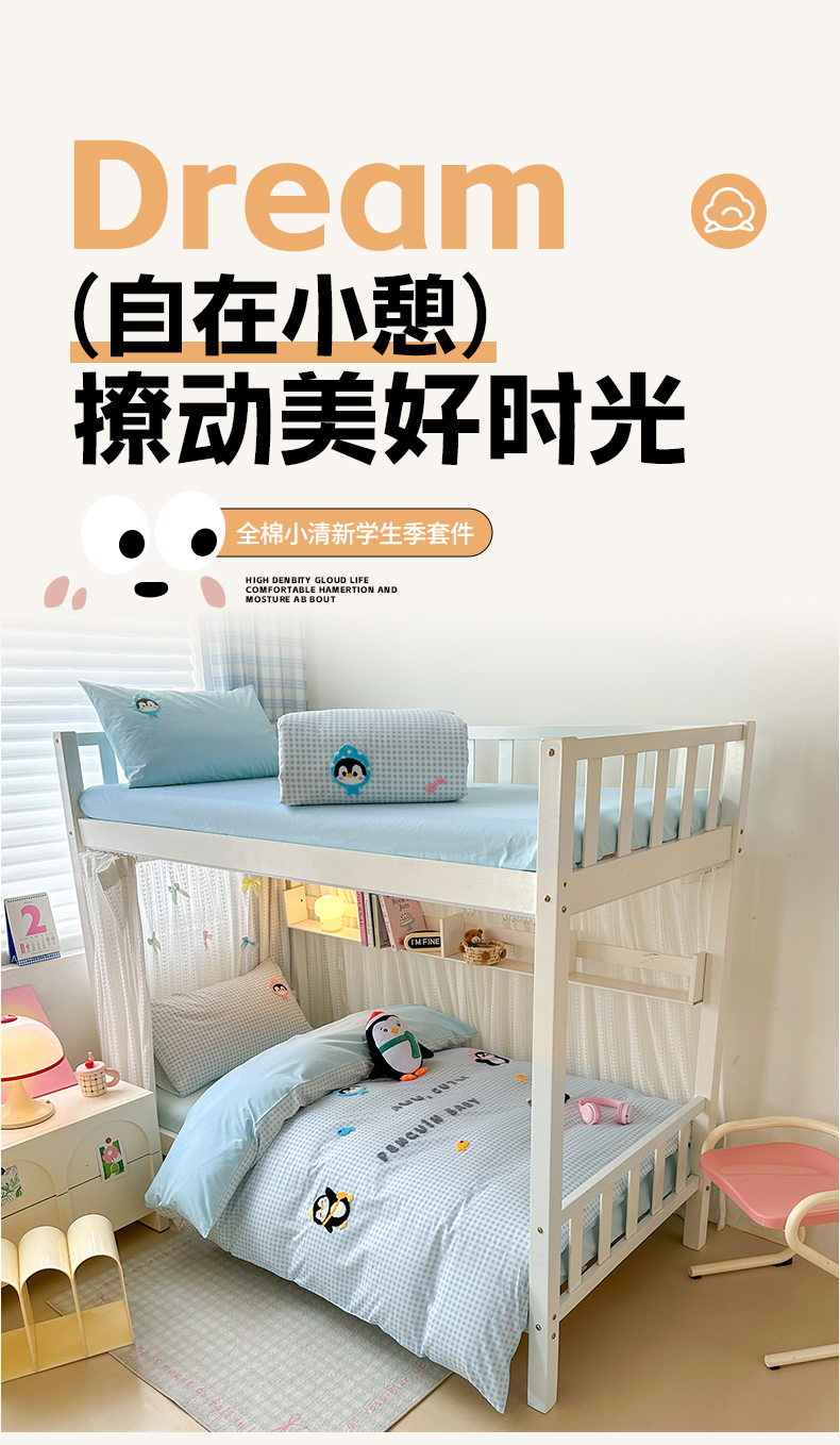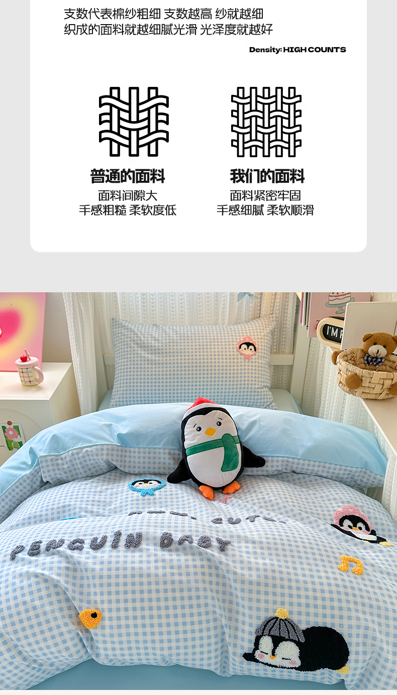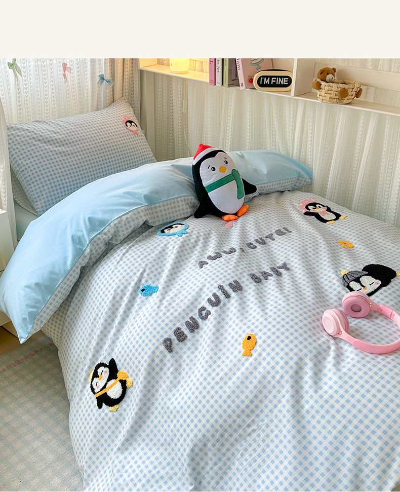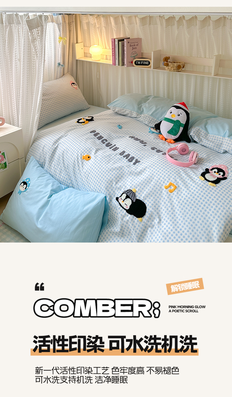 当前位置: 91家纺网 > 商品网购 > 床品套件 > 四件套 > 全棉普通四件套 > 如意朵 2025新款全棉小清新绣花学生季三四件套 企鹅抱抱