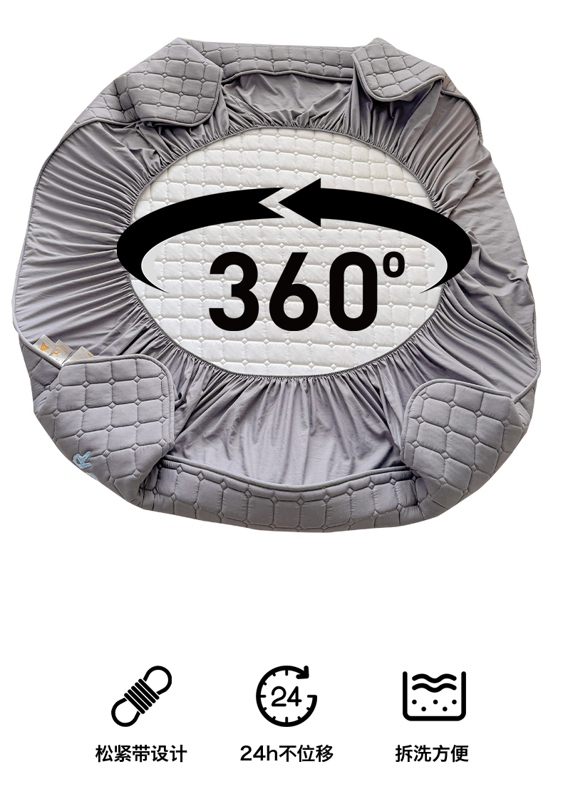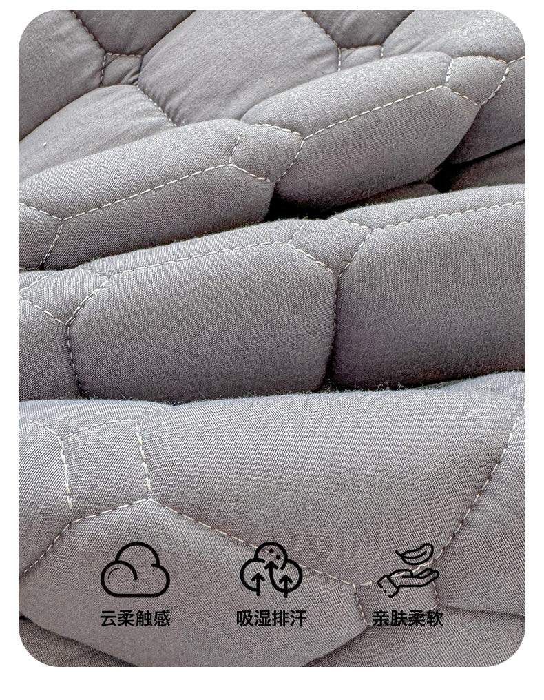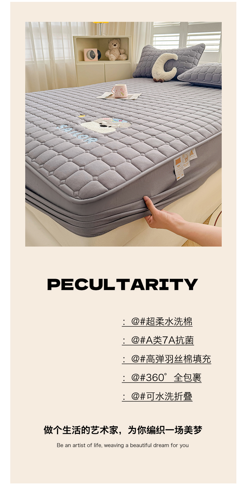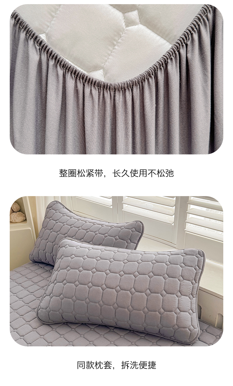 • 91家纺网 家纺一手货源 找家纺 雯豆家纺 2025新品刺绣款毛巾绣夹棉床笠三件套纯色素色床护垫保护套 叮当狗-深空灰