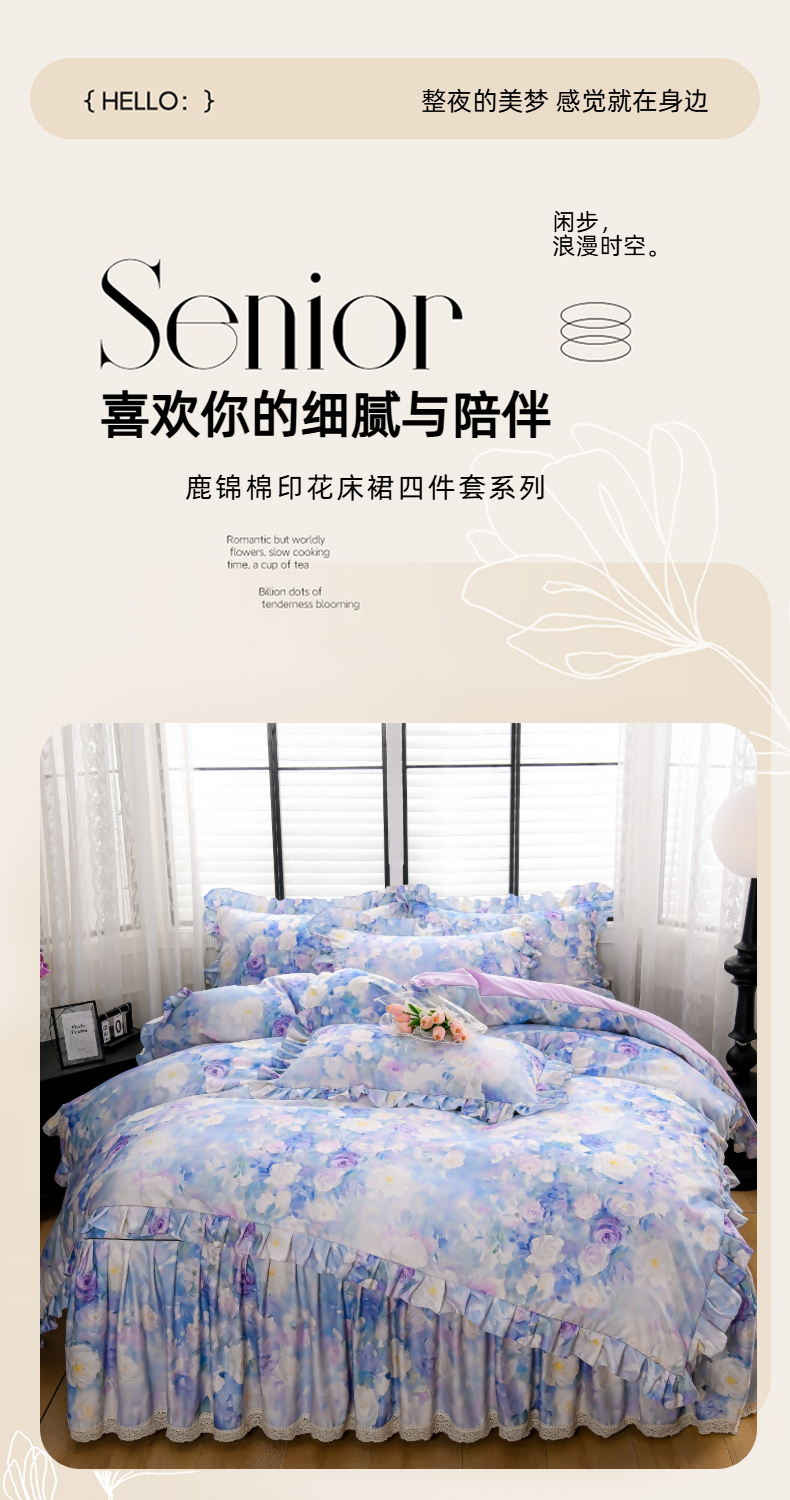 (总)家之硕家纺 2026新款精仿棉夹棉床裙四件套,彩韵,春芽,多丽粉,花恋,漫漫花开,倾城繁花,甜蜜花园,遇见浪漫