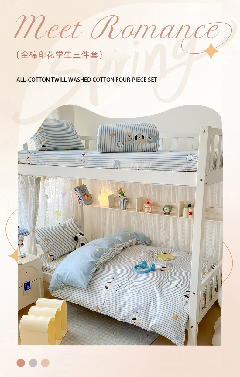 当前位置: 91家纺网 > 商品网购 > 床品套件 > 三件套 > 曼之夏 2025新款全棉纯棉印花学生宿舍上下铺三件套 小狗日记