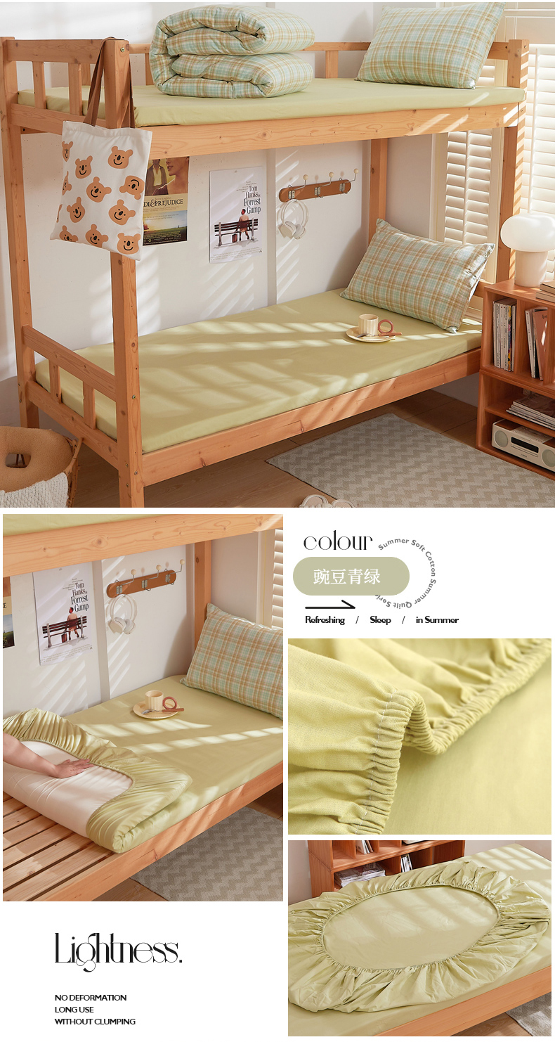 • 91家纺网 家纺一手货源 找家纺 DoDo 兜兜 2025新款全棉纯棉水洗棉学生床笠【可定做尺寸】 豌豆青绿