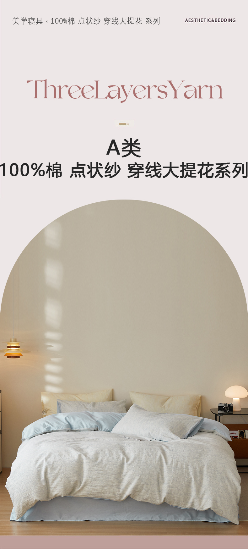 (总)静家居-简约原创家纺 2025新款A类色织三层纱提花系列-夏被系列,本色粉,本色灰,本色咖,本色蓝