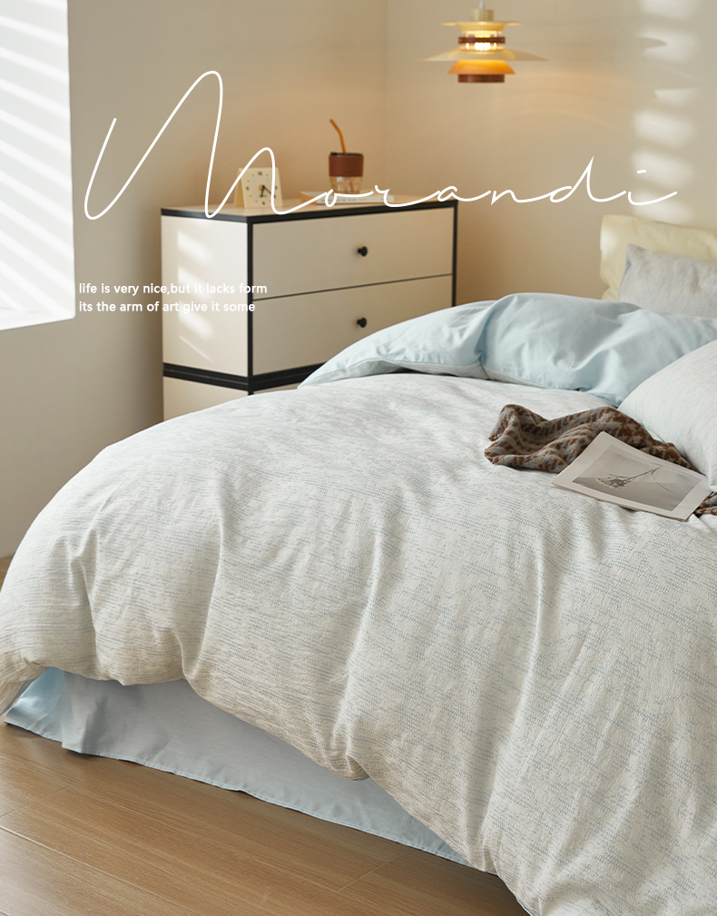 (总)静家居-简约原创家纺 四季款三层纱本色加厚提花四件套,本色-海盐蓝,本色-灰,本色-米咖,本色-松弛粉
