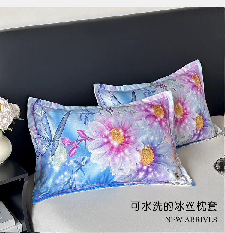• 91家纺网 家纺一手货源 找家纺 乐居家纺 2025新款凉感高密冰丝双人印花枕套+内芯 梦幻小吾