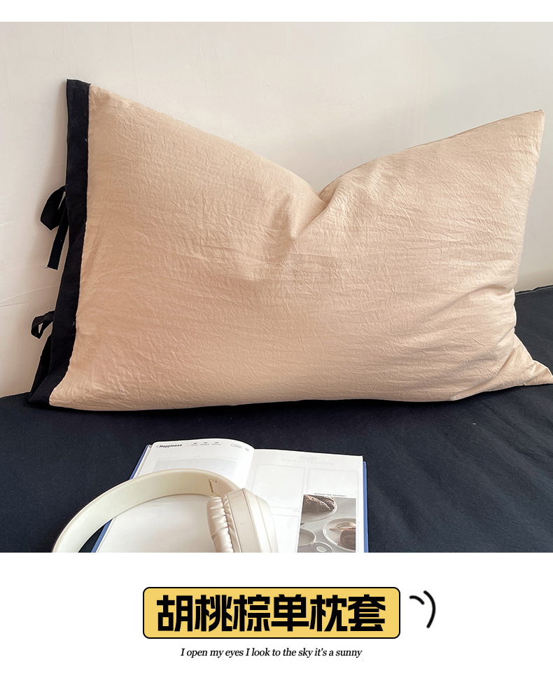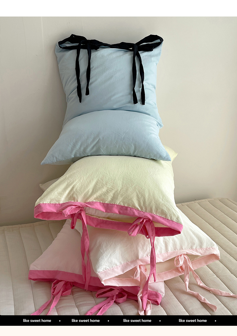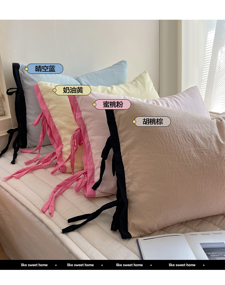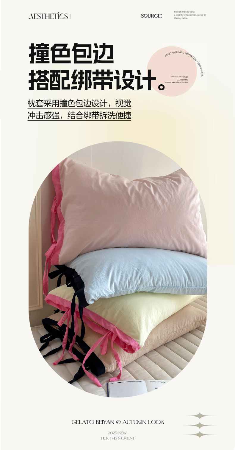 轻奢坊 2025新款水洗棉纯色撞色包边绑带款单品枕套枕套单件 单枕套芝士白
